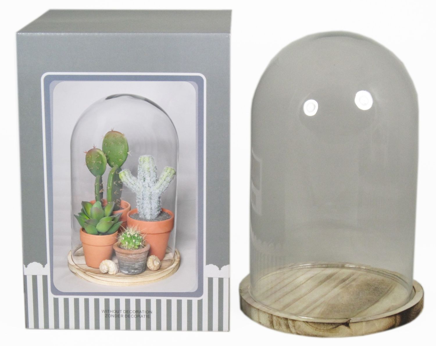 Campana de cristal SABIKA con base de madera jaspeada, transparente, 30cm, Ø22cm