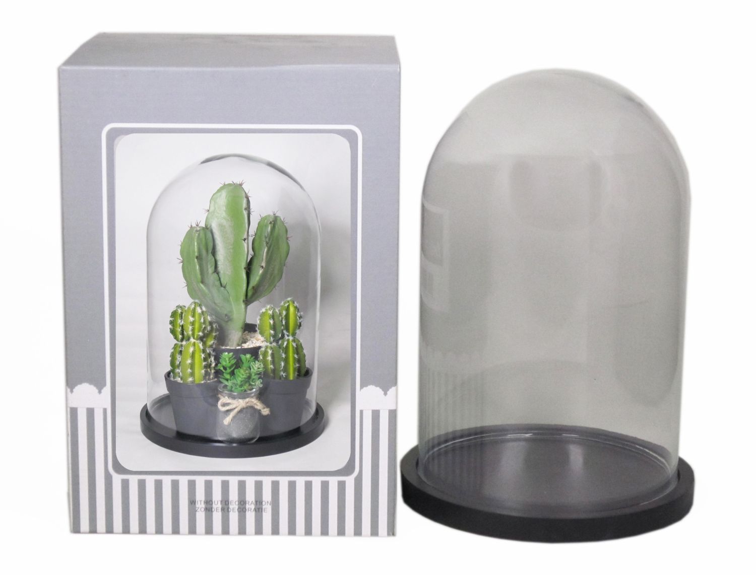 Campana de cristal SABIKA con base de madera negra, transparente, 16cm, Ø12cm