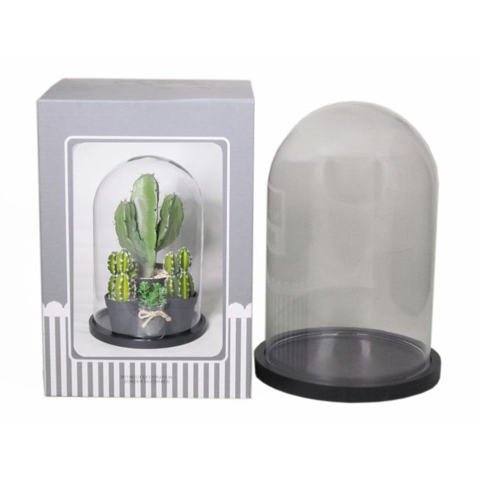 Campana de cristal SABIKA con base de madera negra, transparente, 25cm, Ø17,5cm