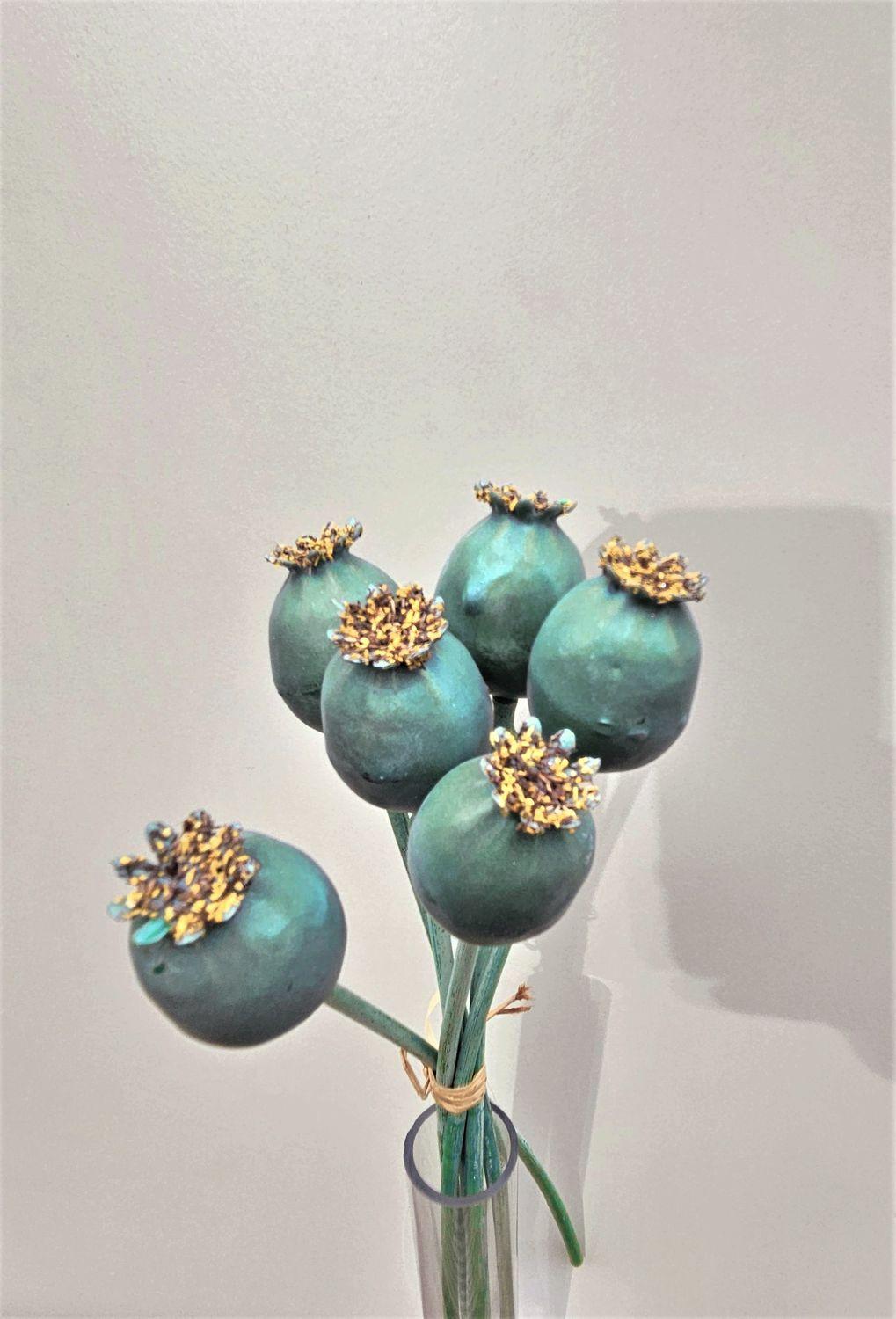 Cápsulas de amapola artificiales TSCHIKO en ramillete, verde menta, 30 cm