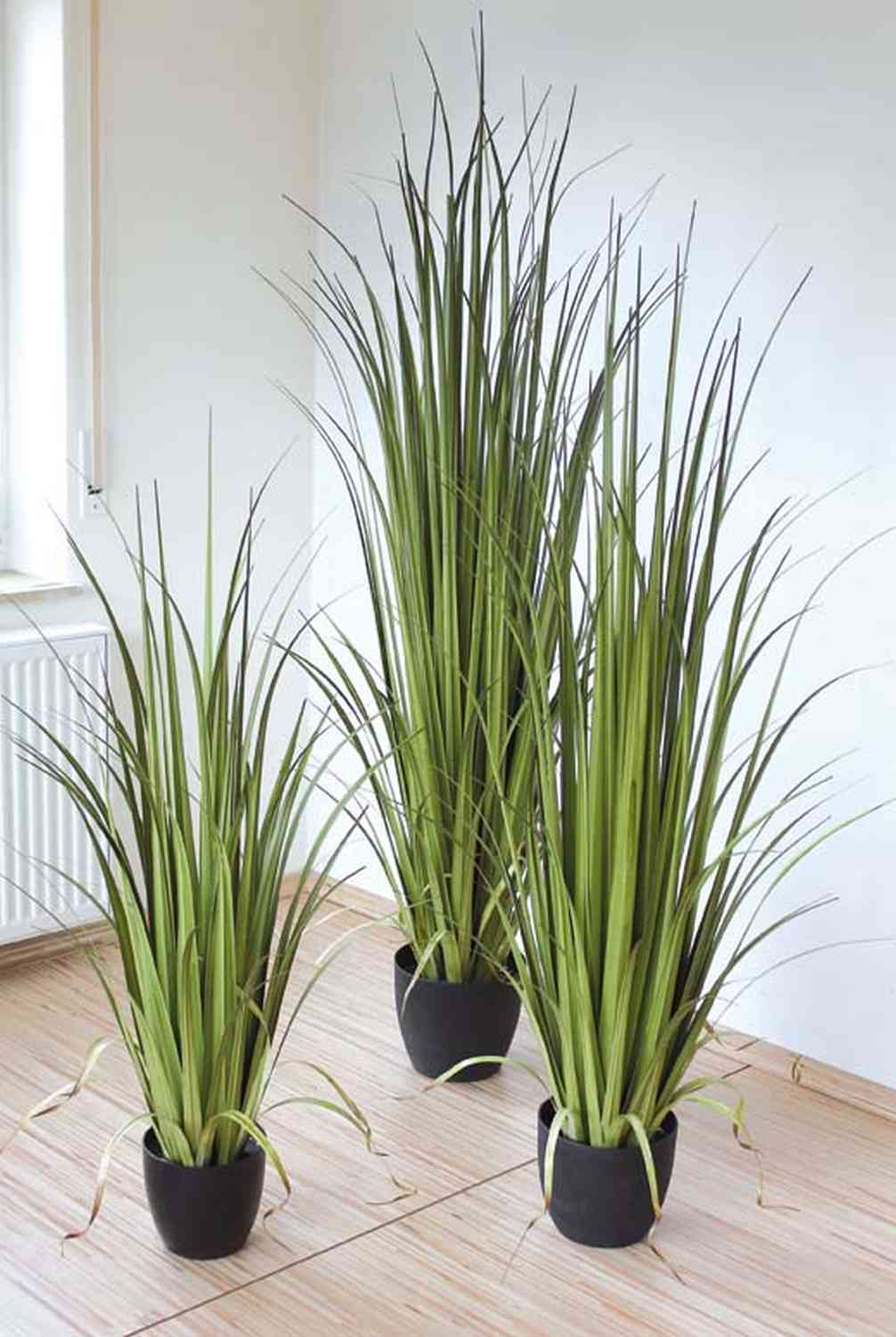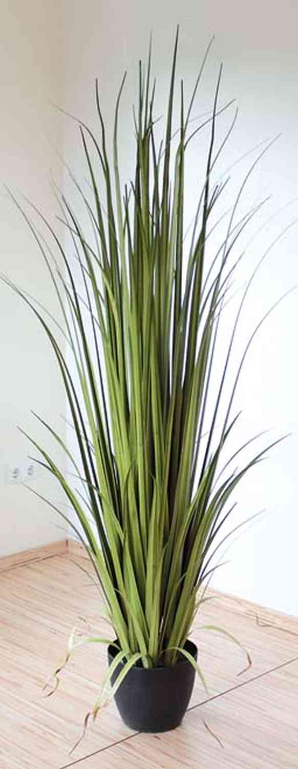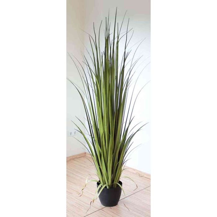 La hierba de plástico MATIN de color verde posee una altura total de 180 cm. La planta sintética crea un ambiente agradable en la habitación y viene en una maceta decorativa.