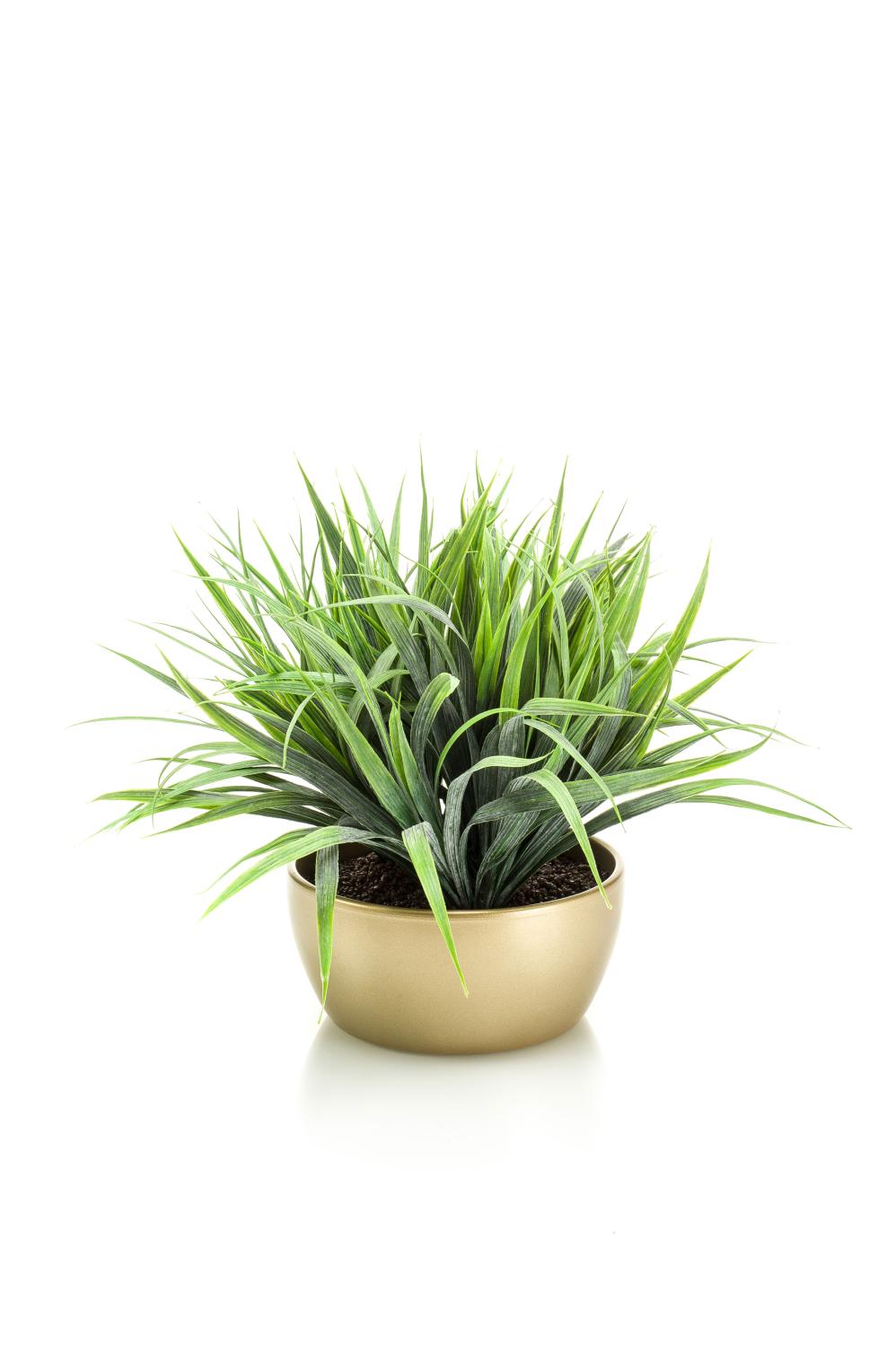 Planta sintética NIBORI en un cuenco de color dorado para una decoración variada en su hogar.