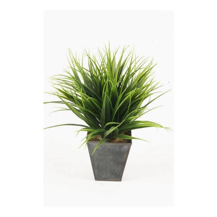 Carrizo de plástico ARIANO en maceta de zinc, verde, 30cm