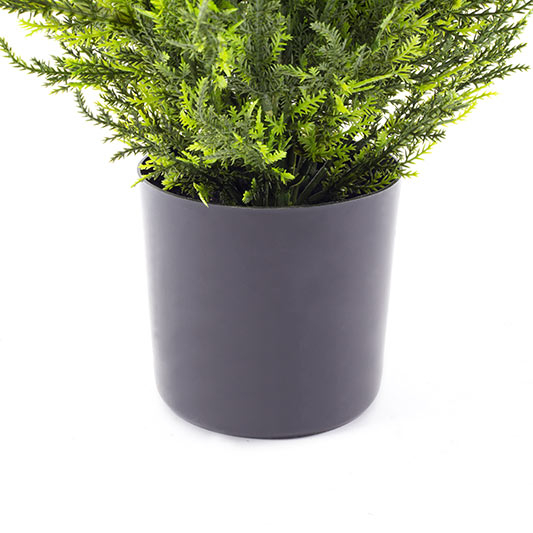 Cedro artificial en maceta de cemento. El árbol posee una altura aproximada de 150 cm.