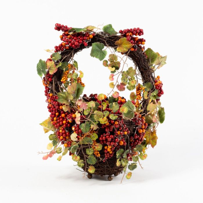 Cesta decorativa de ratán MAURO con bayas y hojas otoñales de material textil.