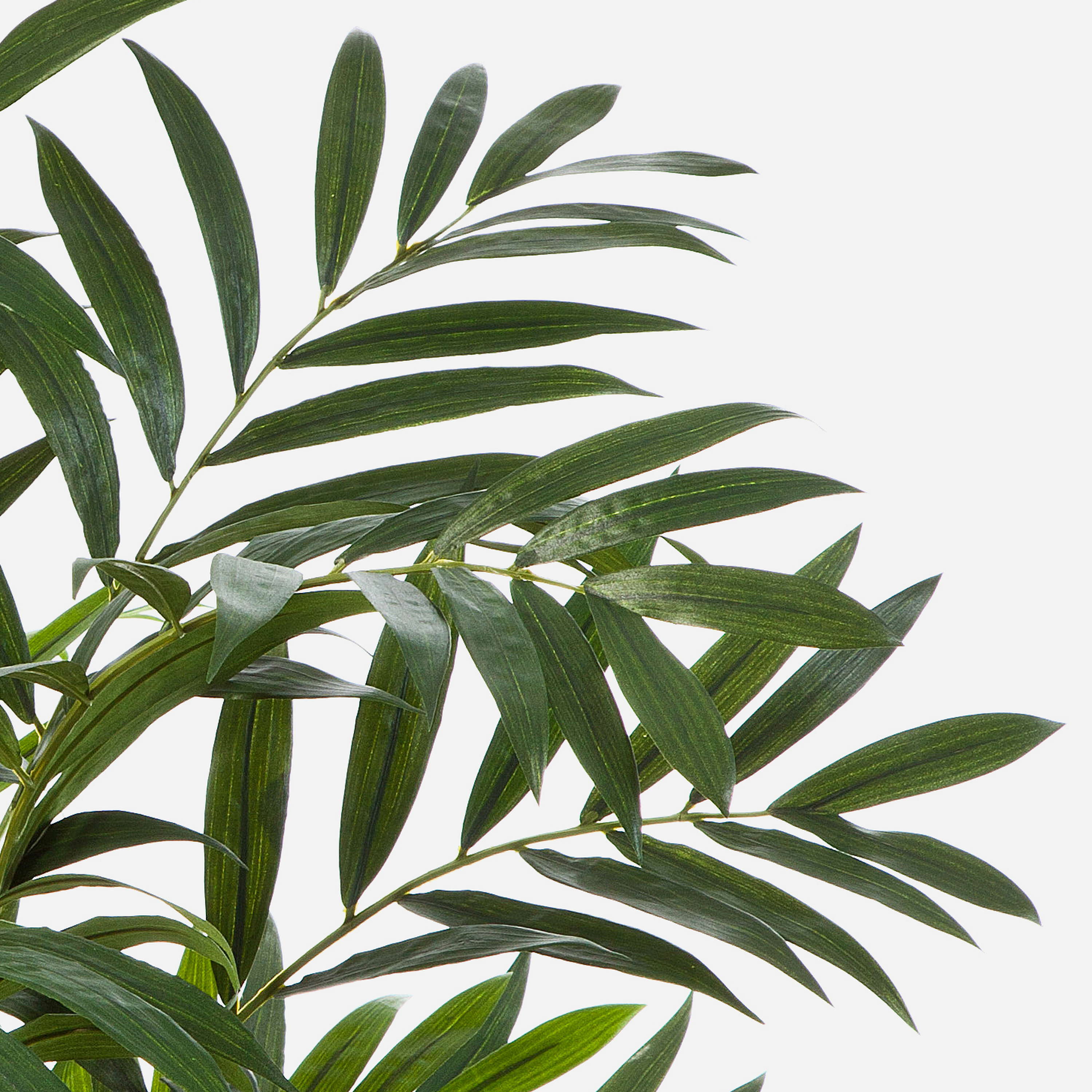 La palmera de salón artificial DIANDRA (Chamaedorea elegans) resulta seductora por la cantidad de detalles con los que han sido elaboradas sus hojas y ramas en distintos tonos de verde. La planta artificial posee un tamaño en torno a 110 cm.
