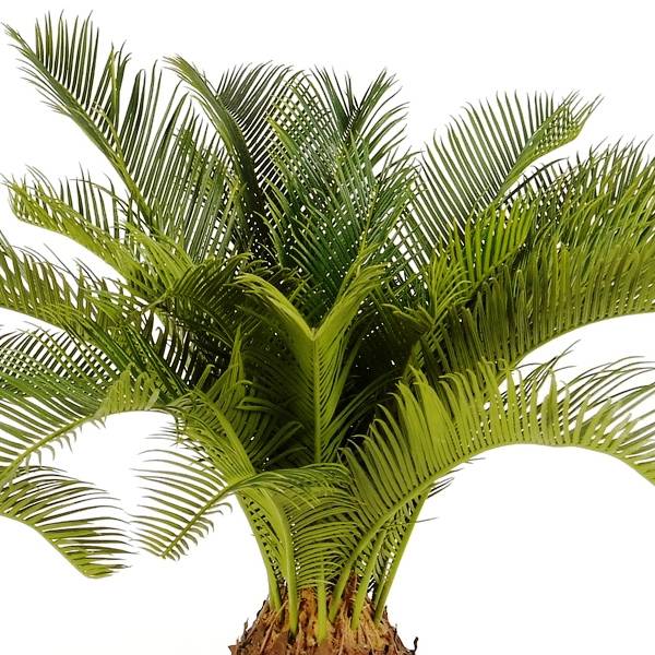 - 22 frondas (con pequeñas rebrotes) con típicas hojas de palmera elaboradas con plástico de alta calidad; altura del bulbo: 25 cm, ø 20 cm
