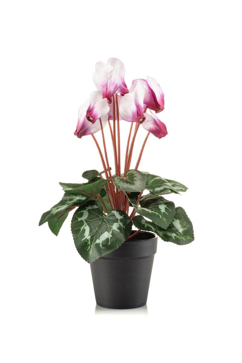 Ciclamen artificial VERIANA en maceta decorativa, blanco-rosa, 30 cm
