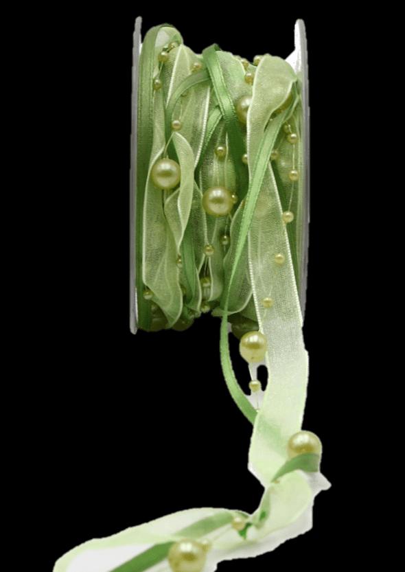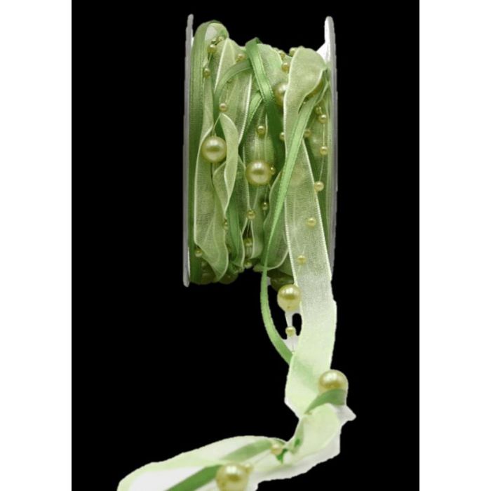 Cinta decorativa con cuentas CARESA de gasa y satén, verde, 5 m, 20 mm