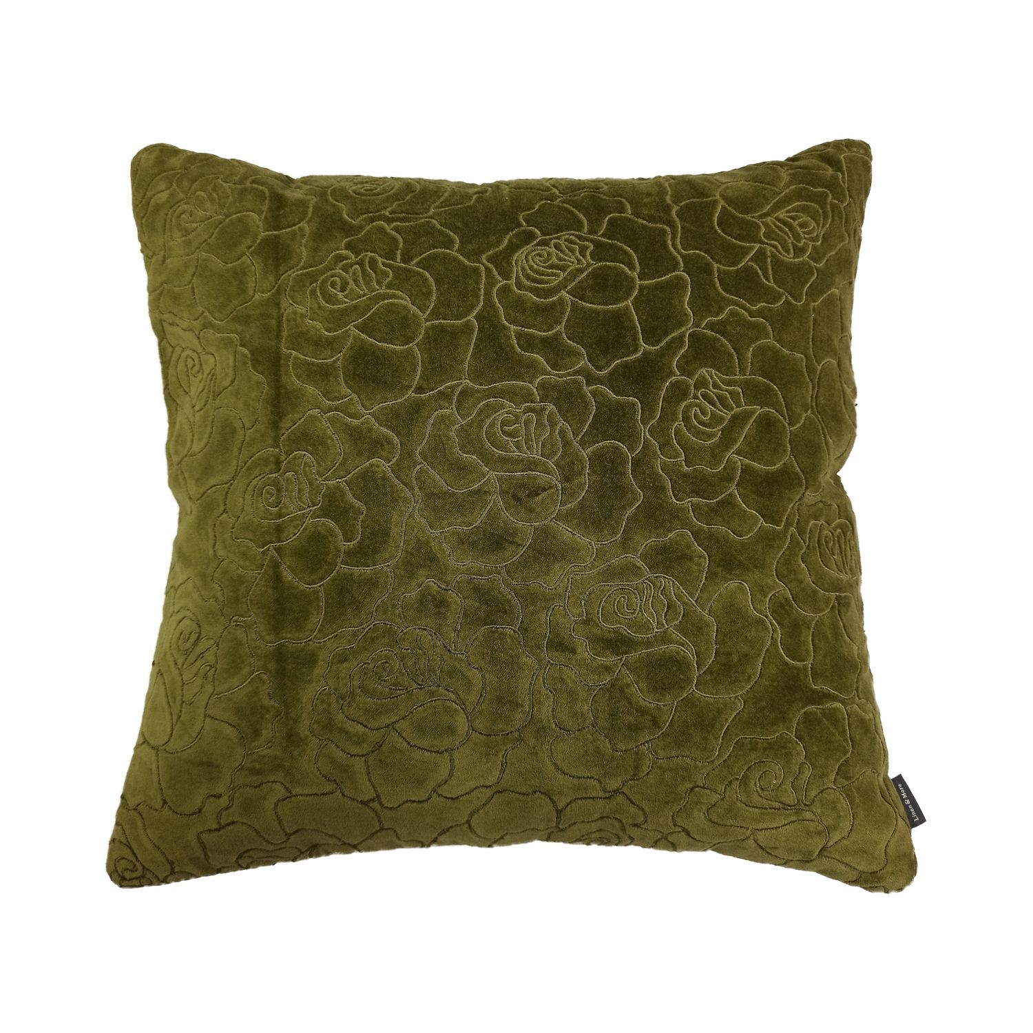 Cojín decorativo para sofá ALAIA, estampado de rosas, verde y amarillo, 45 x 45 cm