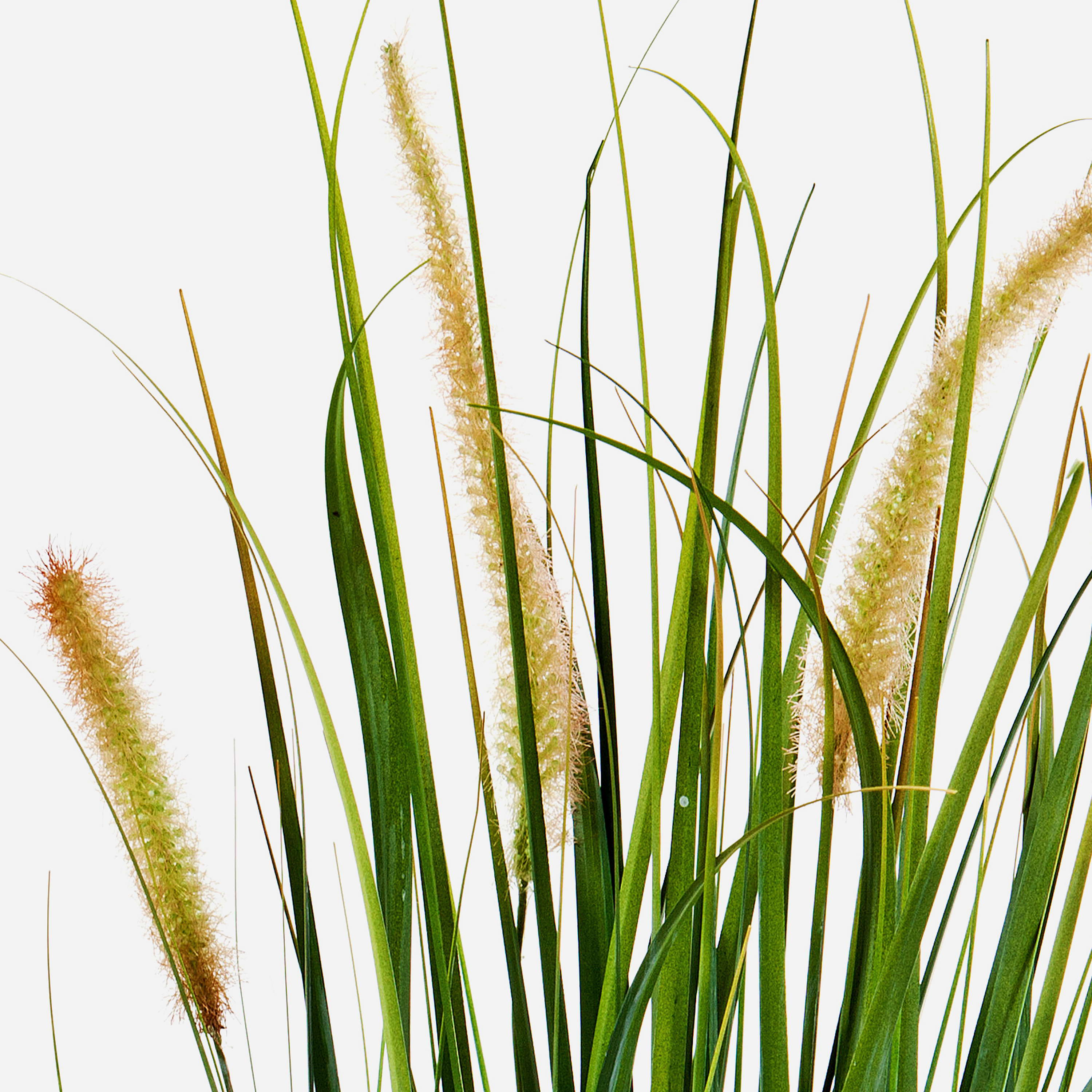 El Pennisetum alopecuroides FEHMI posee un aspecto real gracias a sus finas hojas en tonos naturales y sus panojas en color amarillo con toques marrones. La altura total de la planta artificial es de 60 cm, aprox.