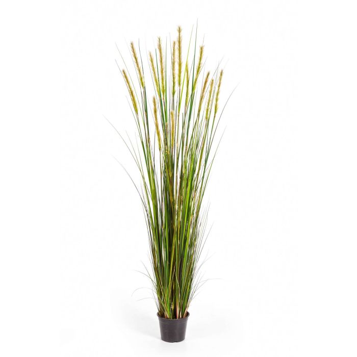 Hierba de cola de zorro (Alopecurus arundinaceus) con una altura de unos 180 cm. La hierba viene en una maceta negra de plástico para la fijación cómoda en un porta macetas.