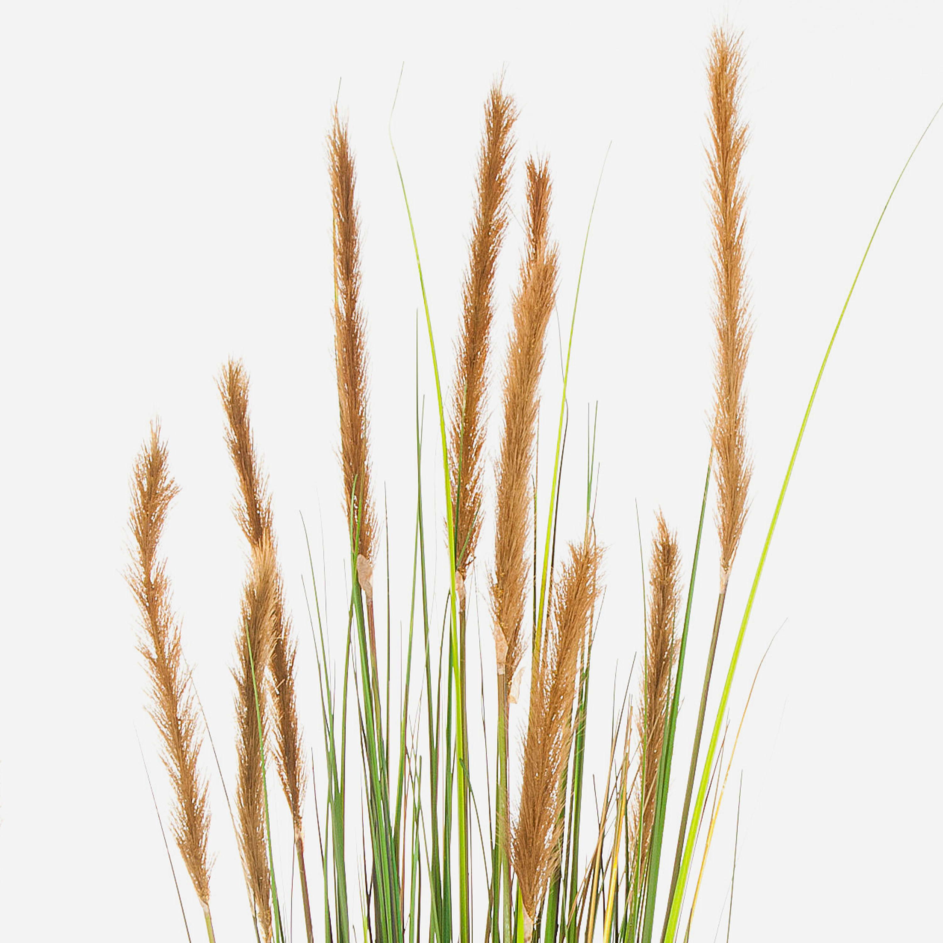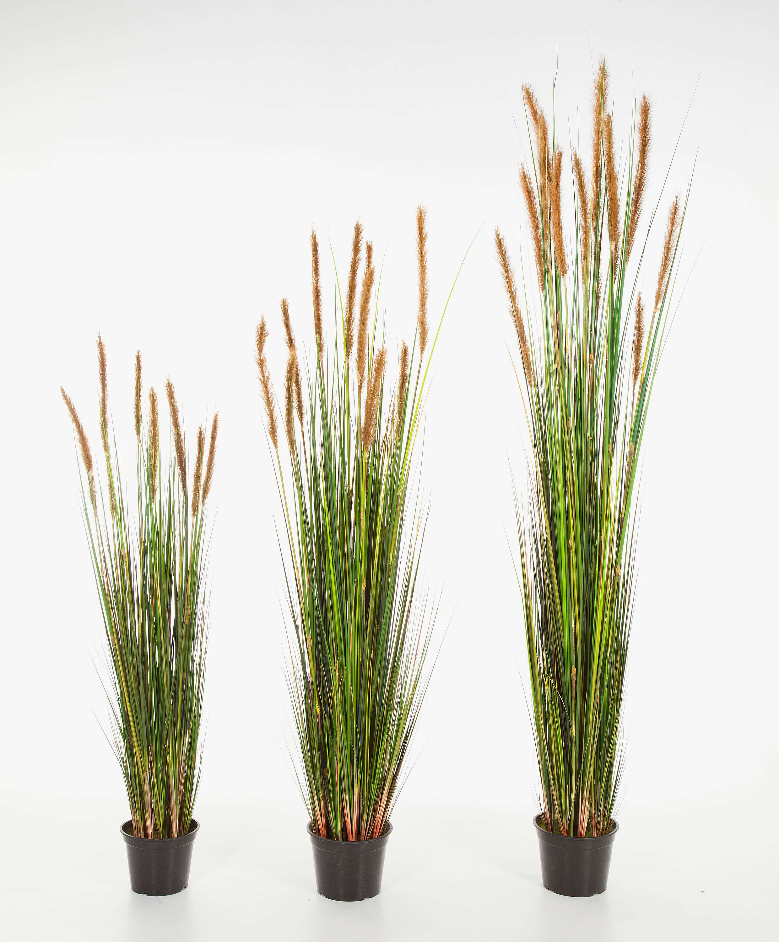 Hierba de cola de zorro (Alopecurus arundinaceus) con una altura de unos 90 cm. La hierba viene en una maceta negra de plástico para la fijación cómoda en un porta macetas.