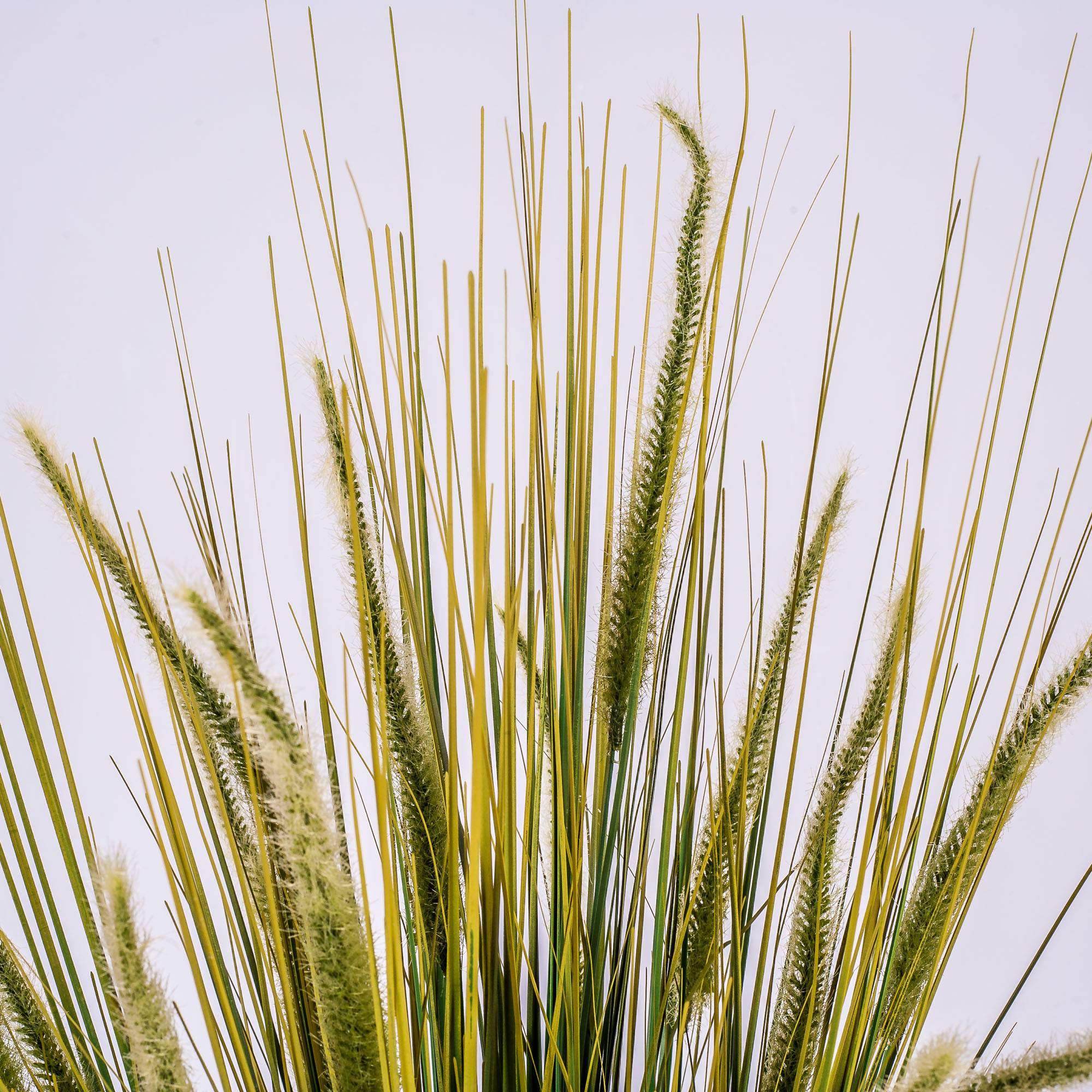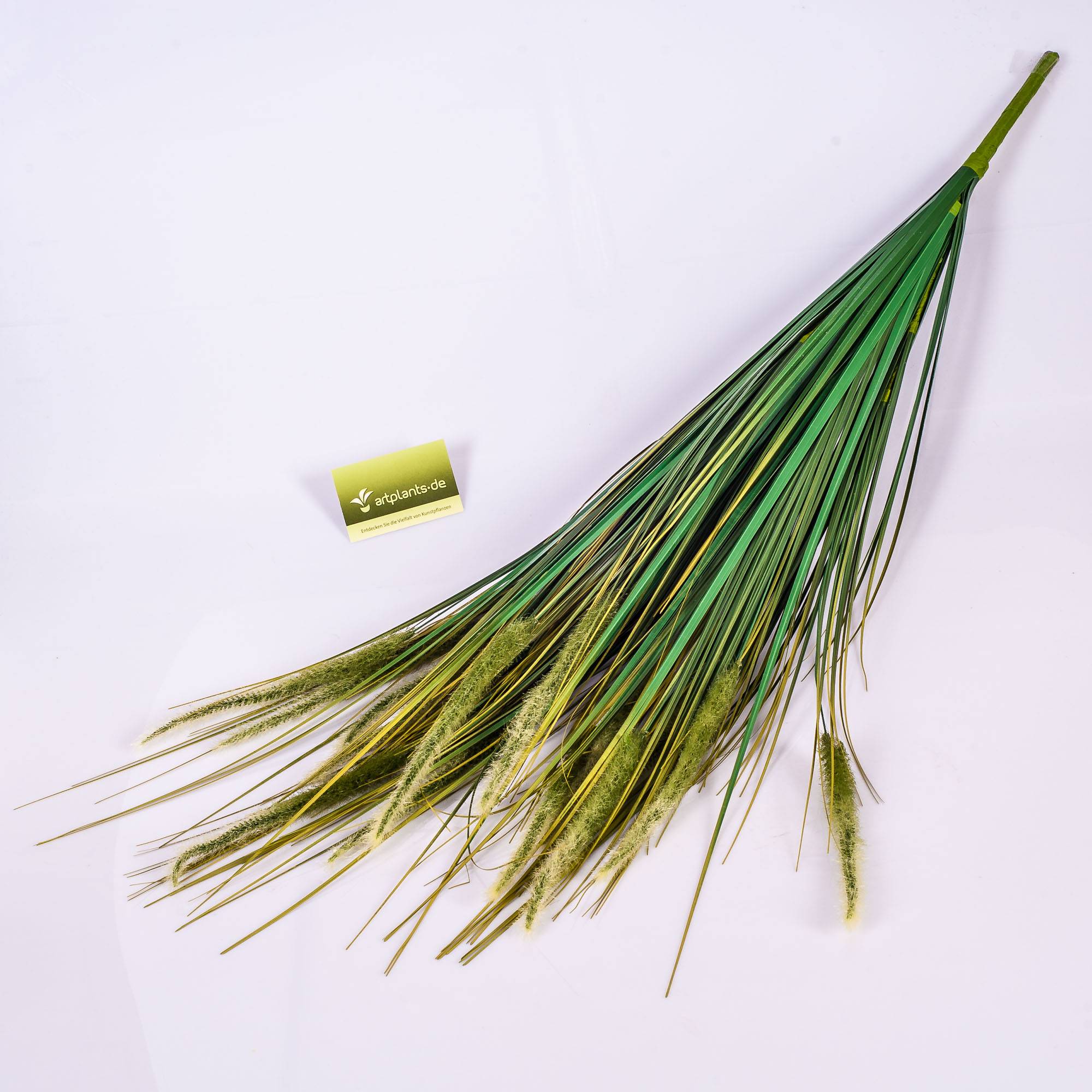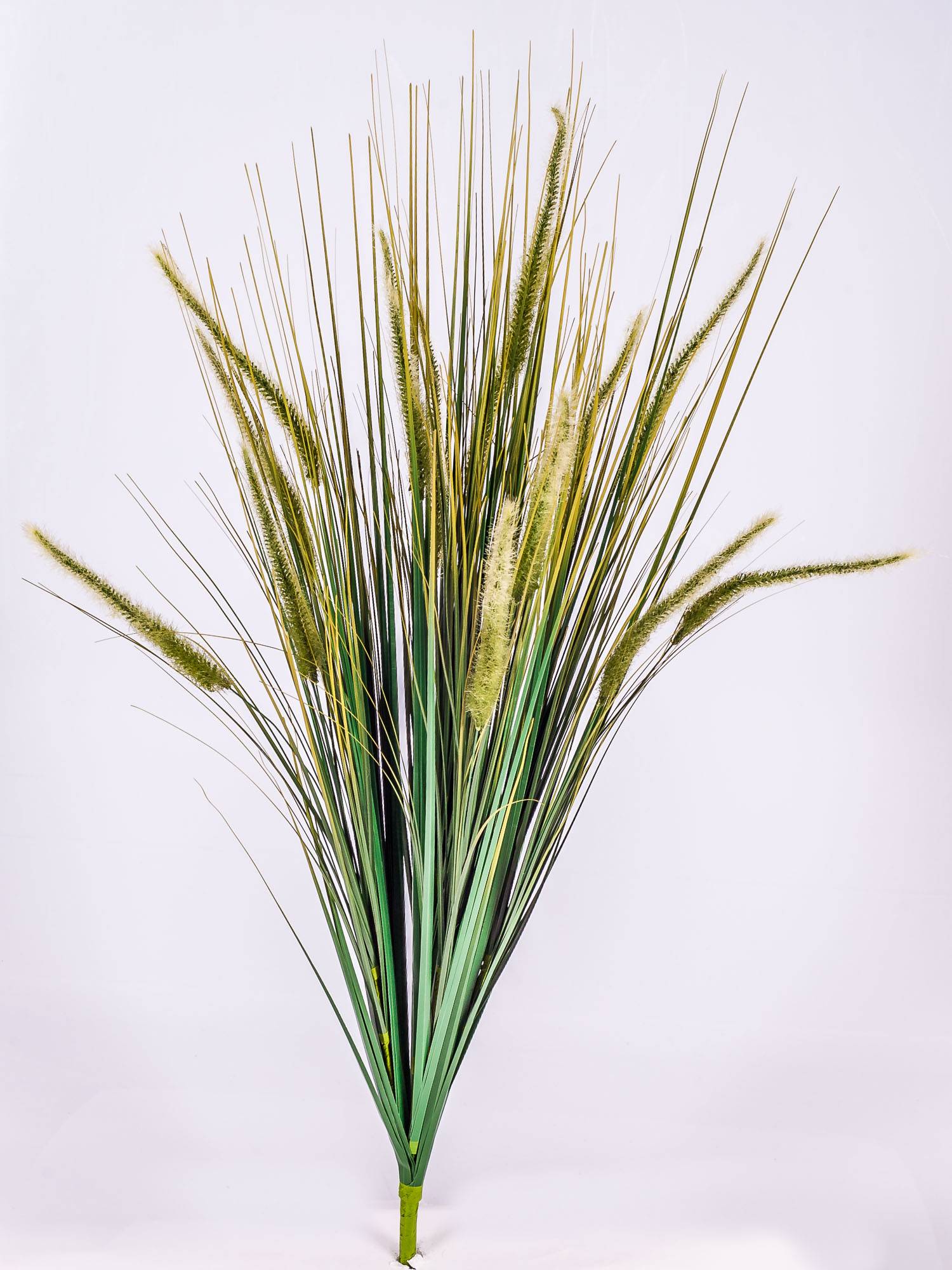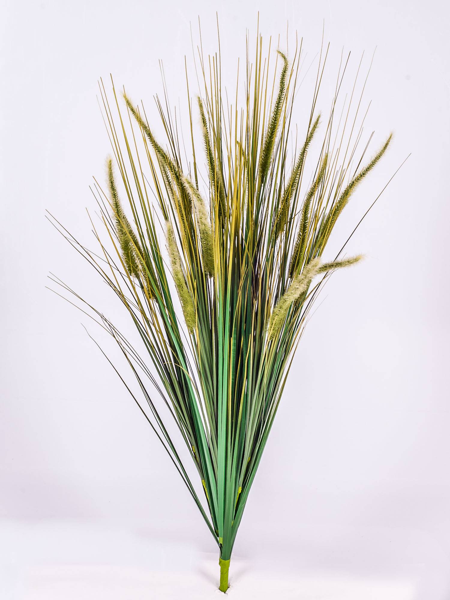 Manojo de hierba artificial de cola de zorro (Alopecurus arundinaceus) en verde. El haz tiene una altura de unos 95 cm.