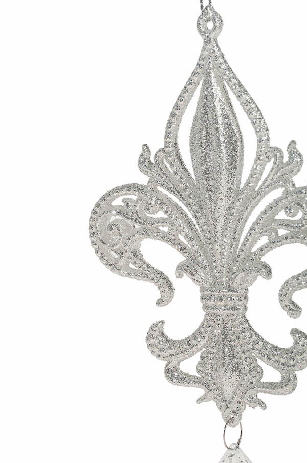 Colgante acrílico lirio heráldico AZARIEL, purpurina, plata, 15cm