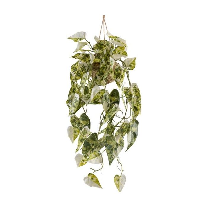 Colgante decorativo Syngonium en cesta colgante ZULHER, verde y blanco, 80 cm