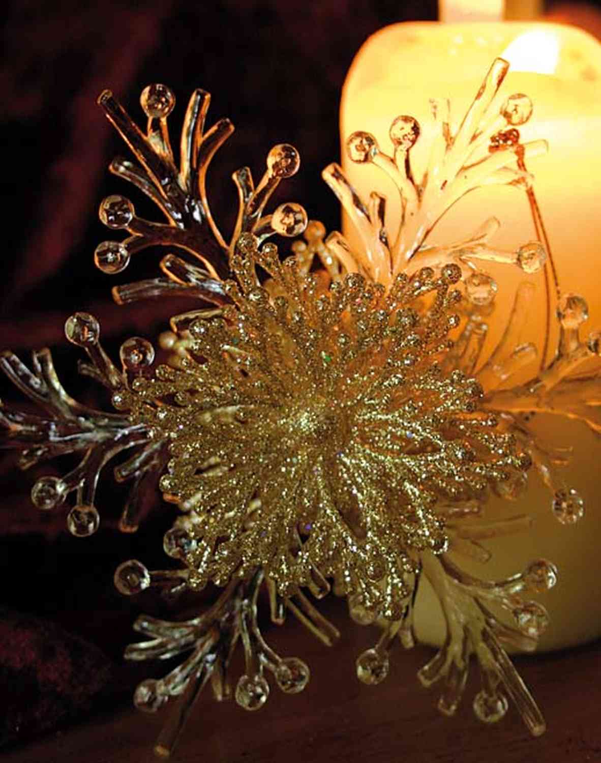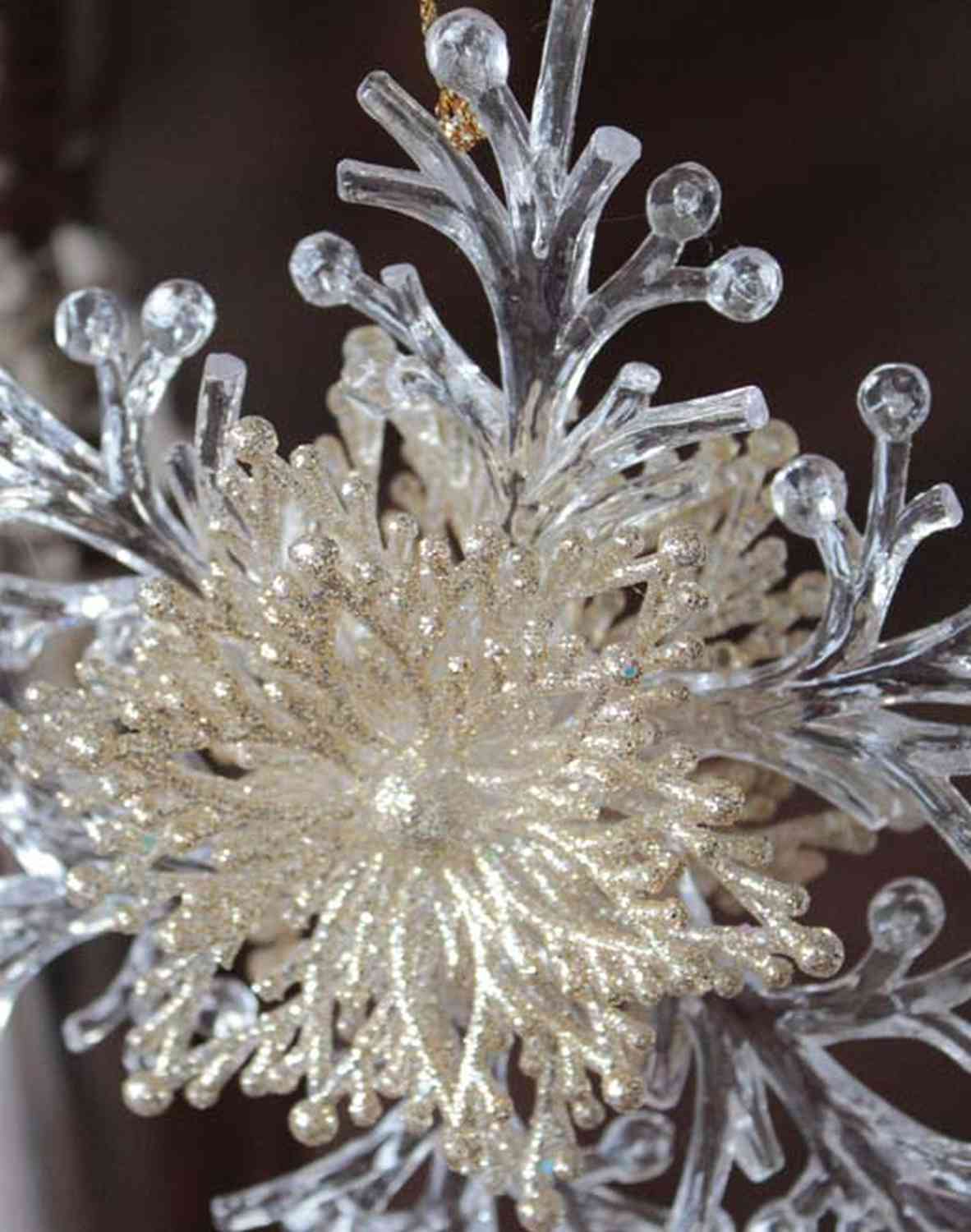 Colgante navideño copo de nieve BALADI, acrílico, purpurina, transparente-oro, Ø15cm