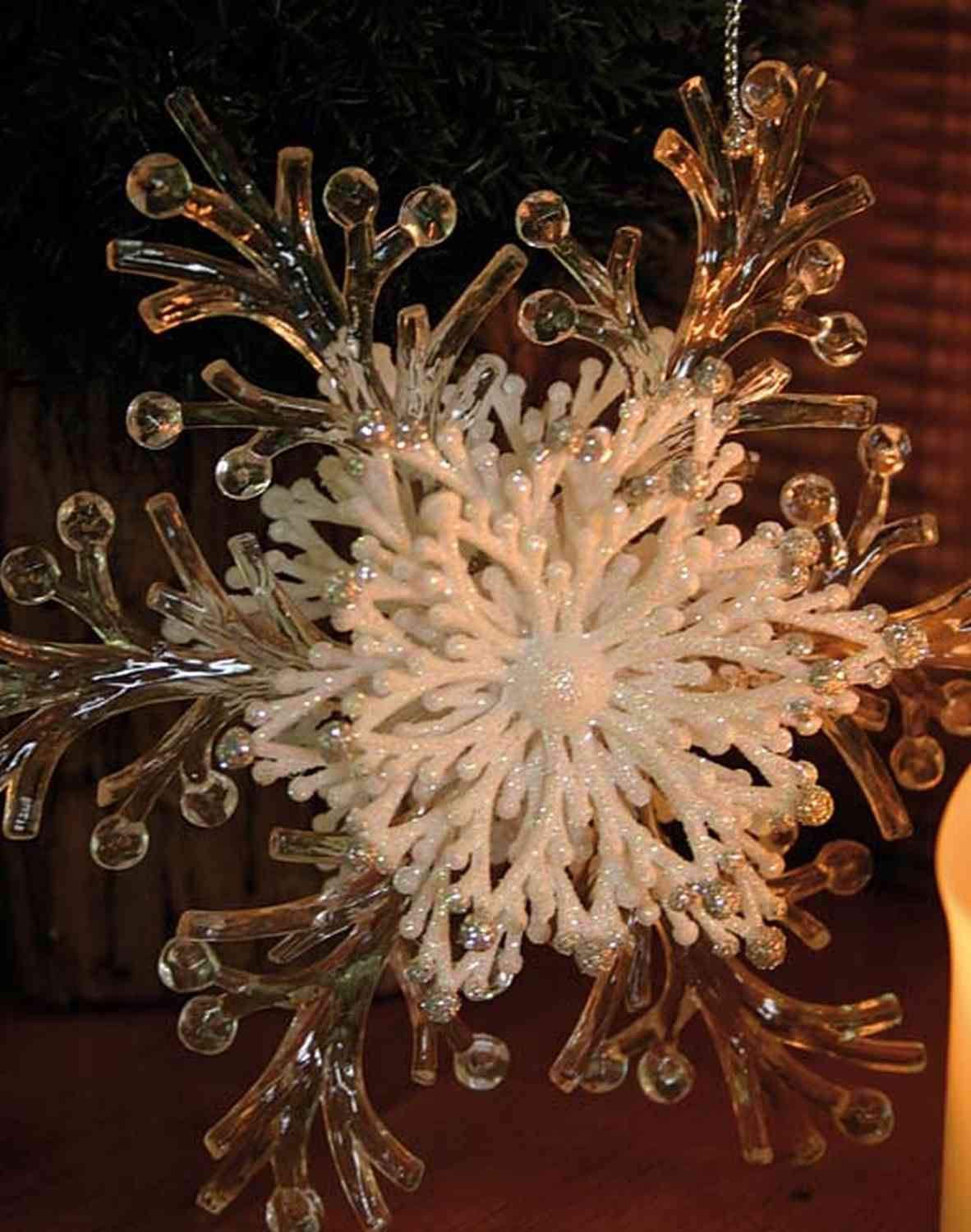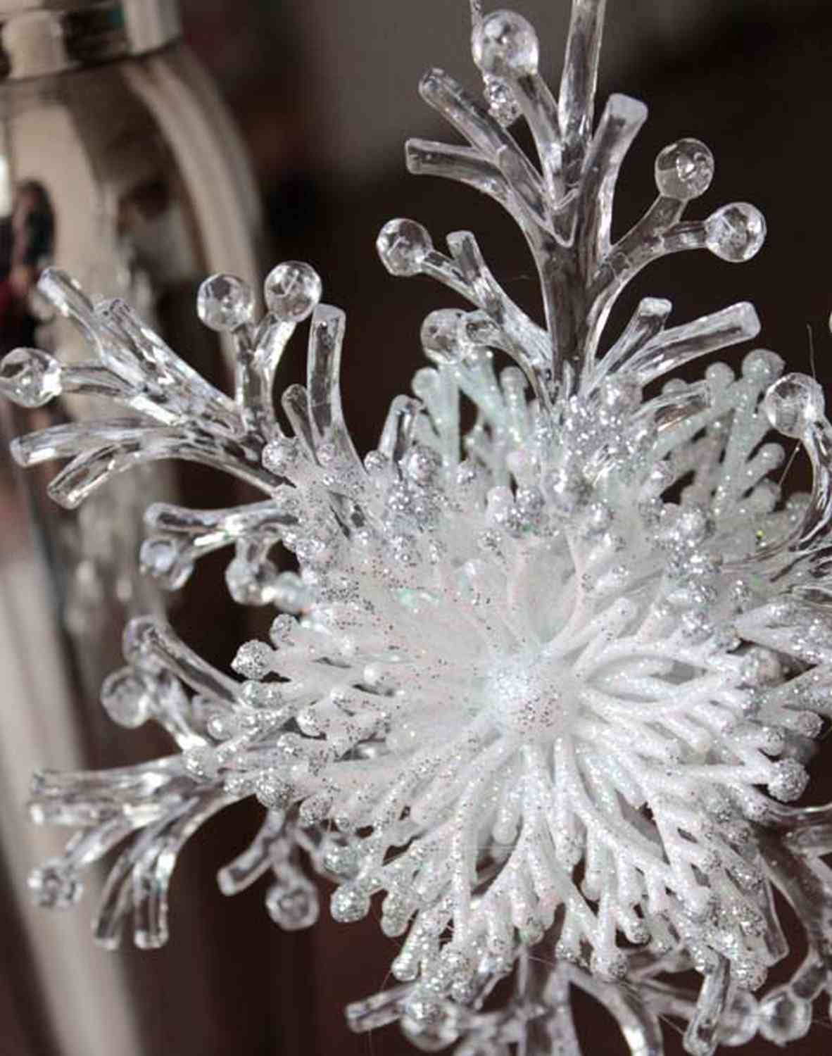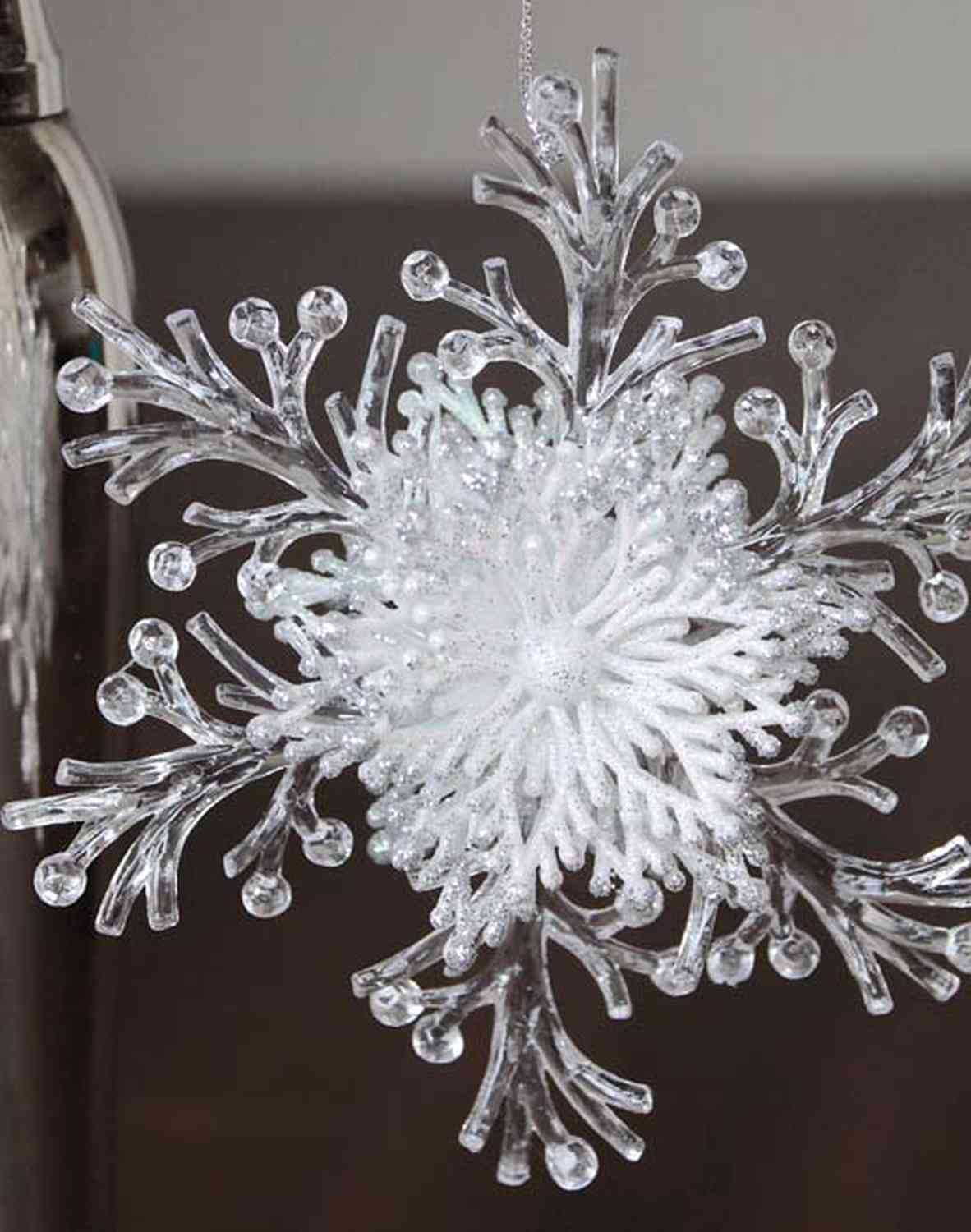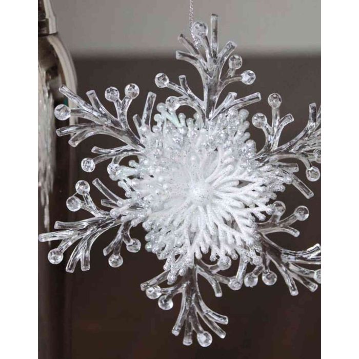 Colgante navideño copo de nieve BALADI, acrílico, purpurina, transparente-plata-blanco, Ø15cm