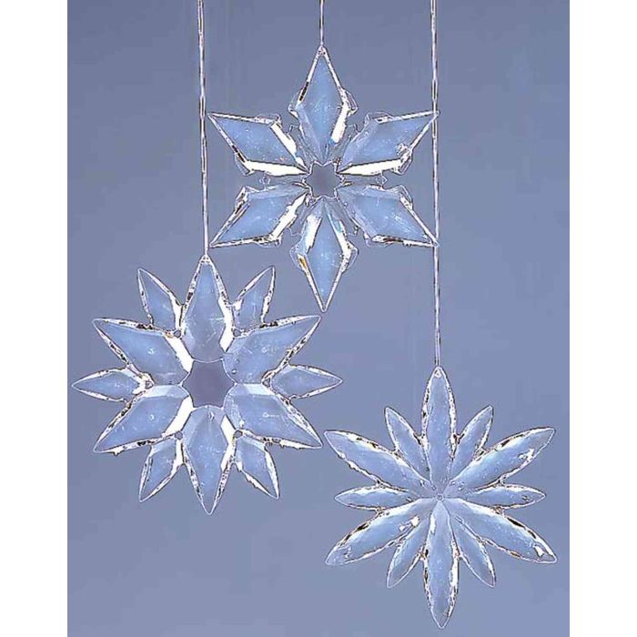 Colgantes acrílicos de copos de nieve WOLFGANG, 3 unidades, transparentes, Ø 11-12 cm