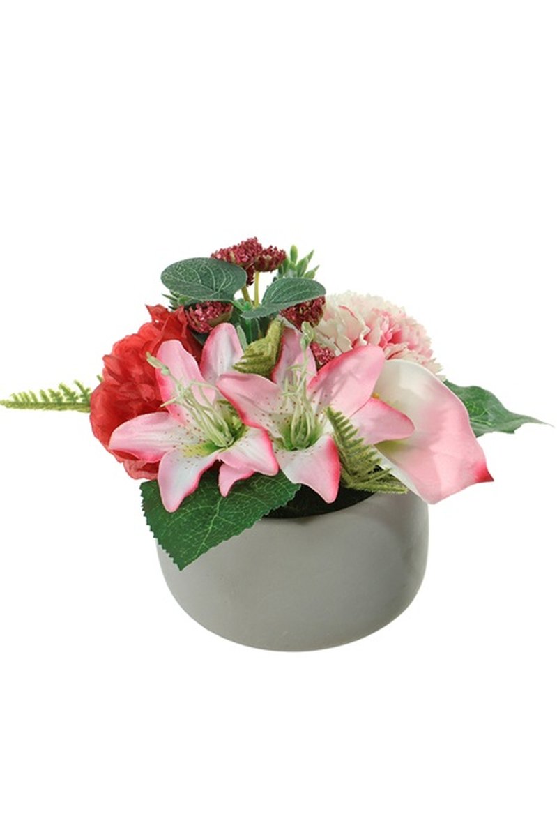 Composición artificial de lirio, cala, peonía, clavel ALFARA, maceta decorativa, rosa-crema-rojo, 19cm, Ø20cm