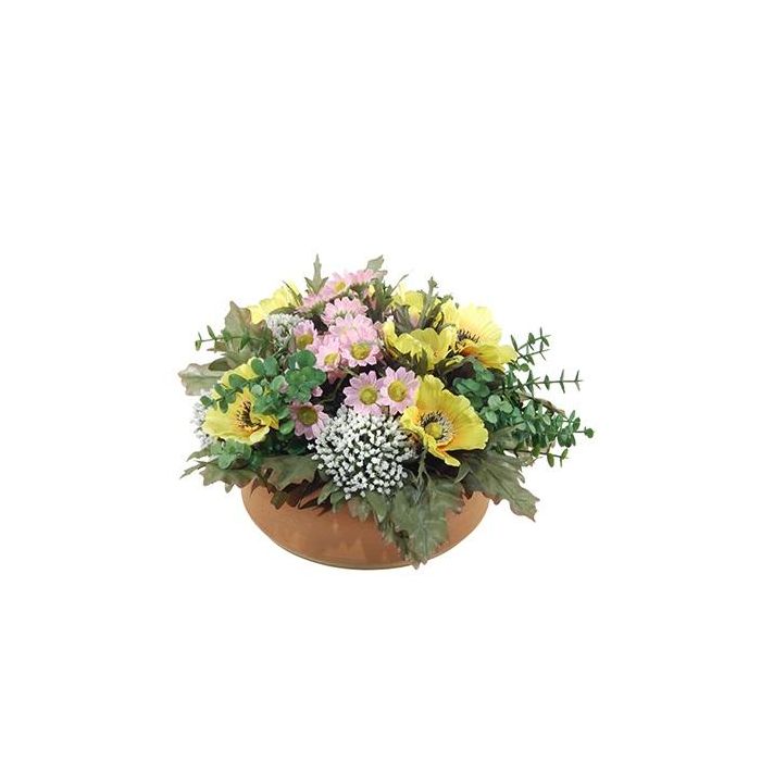 Composición de flores artificiales de Anémona, Astilbe IGNATIO sobre placa, amarillo-rosa, 17cm, Ø28cm