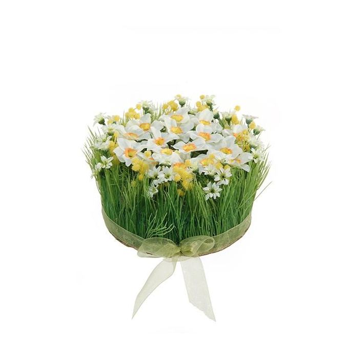 Composición de flores artificiales de narcisos, hierba HAULANI, blanco-amarillo, 12cm, Ø20cm