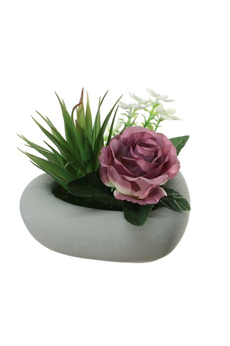 Composición de flores artificiales de Rosa, Agave BEVIS, maceta decorativa, blanco-violeta viejo, 14cm, Ø18cm