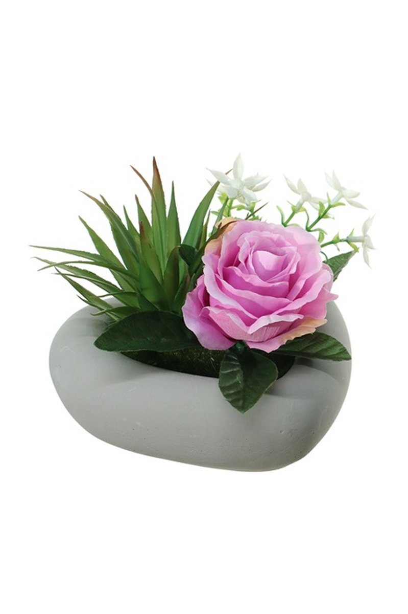 Composición de flores artificiales de Rosa, Agave BEVIS, maceta decorativa, lila-blanco, 14cm, Ø18cm