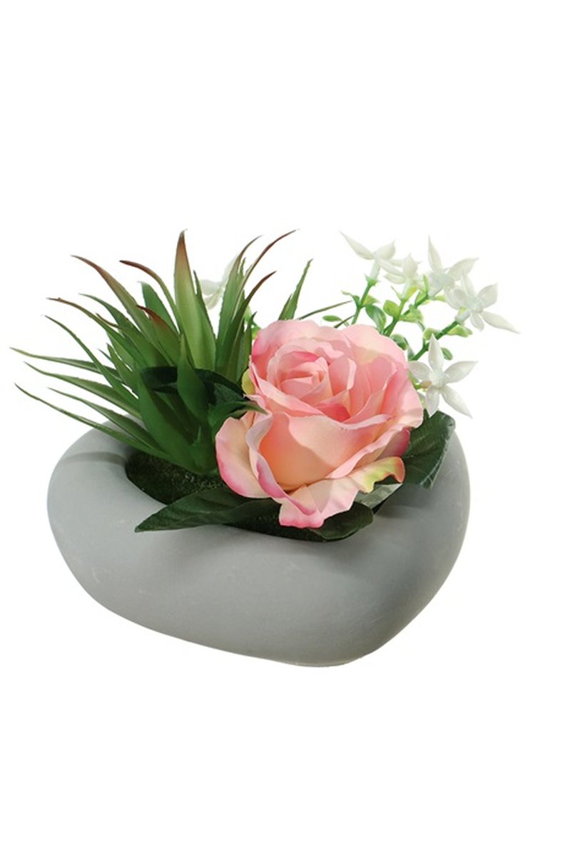Composición de flores artificiales de Rosa, Agave BEVIS, maceta decorativa, rosa-blanco, 14cm, Ø18cm