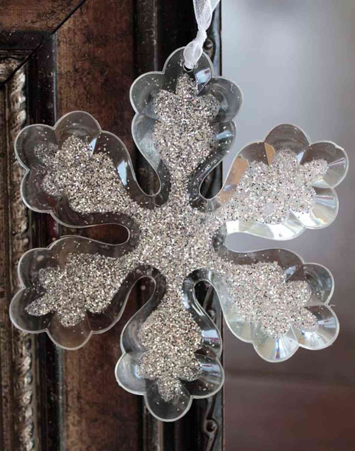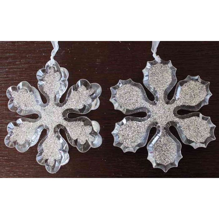 Copo de nieve acrílico, YLVALIE, 2 unidades, percha, purpurina, transparente-plata, Ø10cm