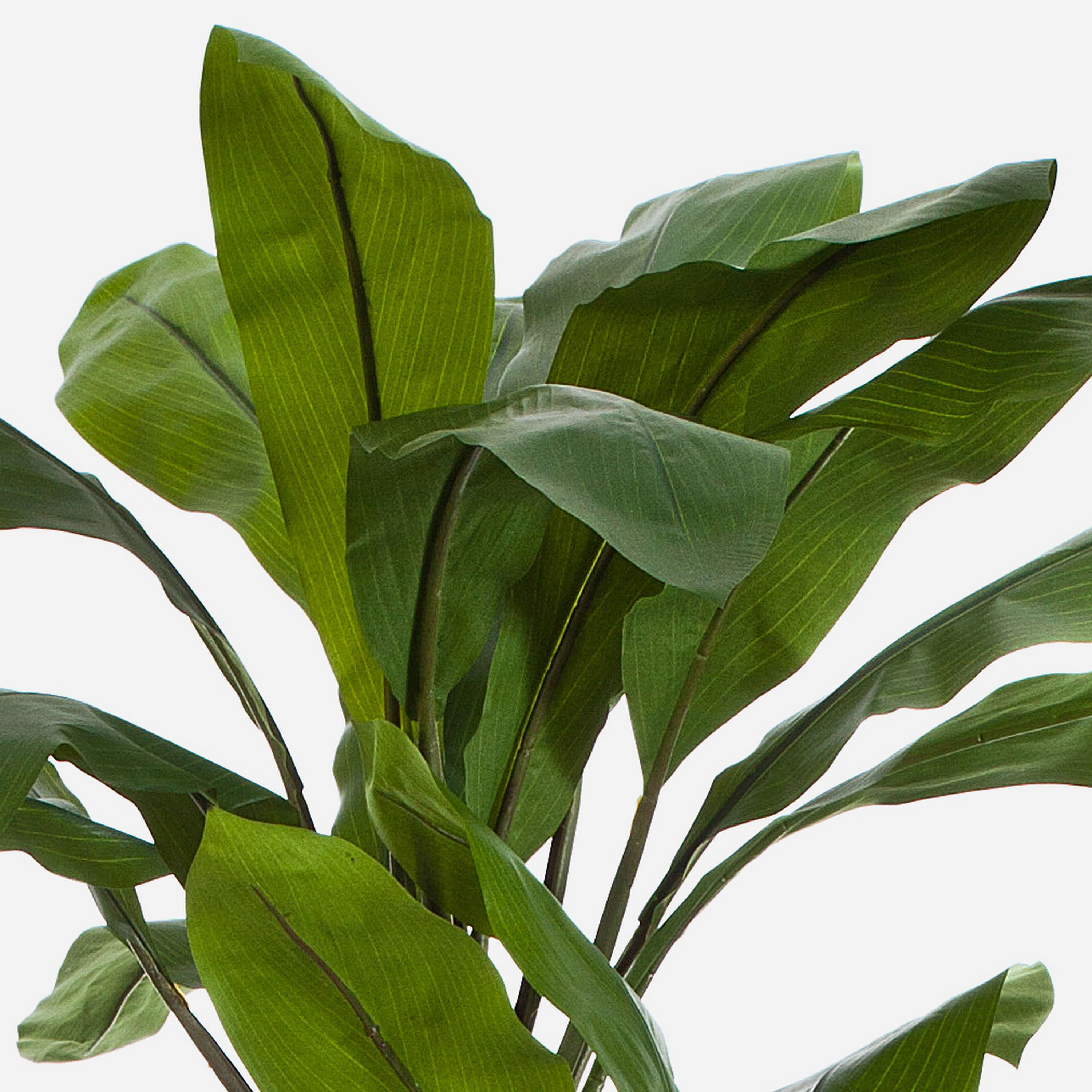 La Cordyline fruticosa artificial KAIA posee 3 troncos naturales y hojas grandes ovaladas en color verde. La planta artificial mide un total aproximado de 210 cm y es perfecta para decorar en comercios del sector bienestar.