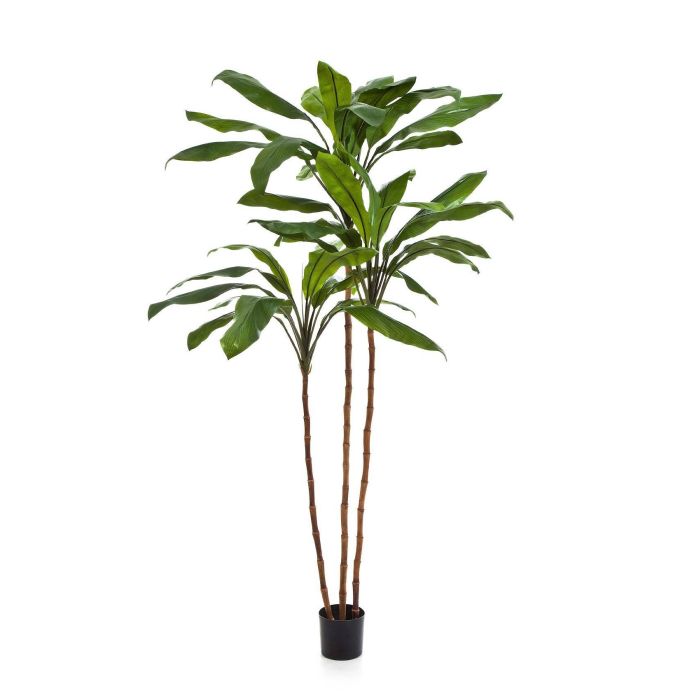 La Cordyline fruticosa artificial KAIA posee 3 troncos naturales y hojas grandes ovaladas en color verde. La planta artificial mide un total aproximado de 240 cm y es perfecta para decorar en comercios del sector bienestar.