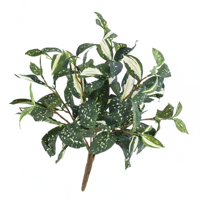 Cordyline artificial en color verde y blanco. La planta posee una altura aproximada de 35 cm y está provista de una vara de ajuste.