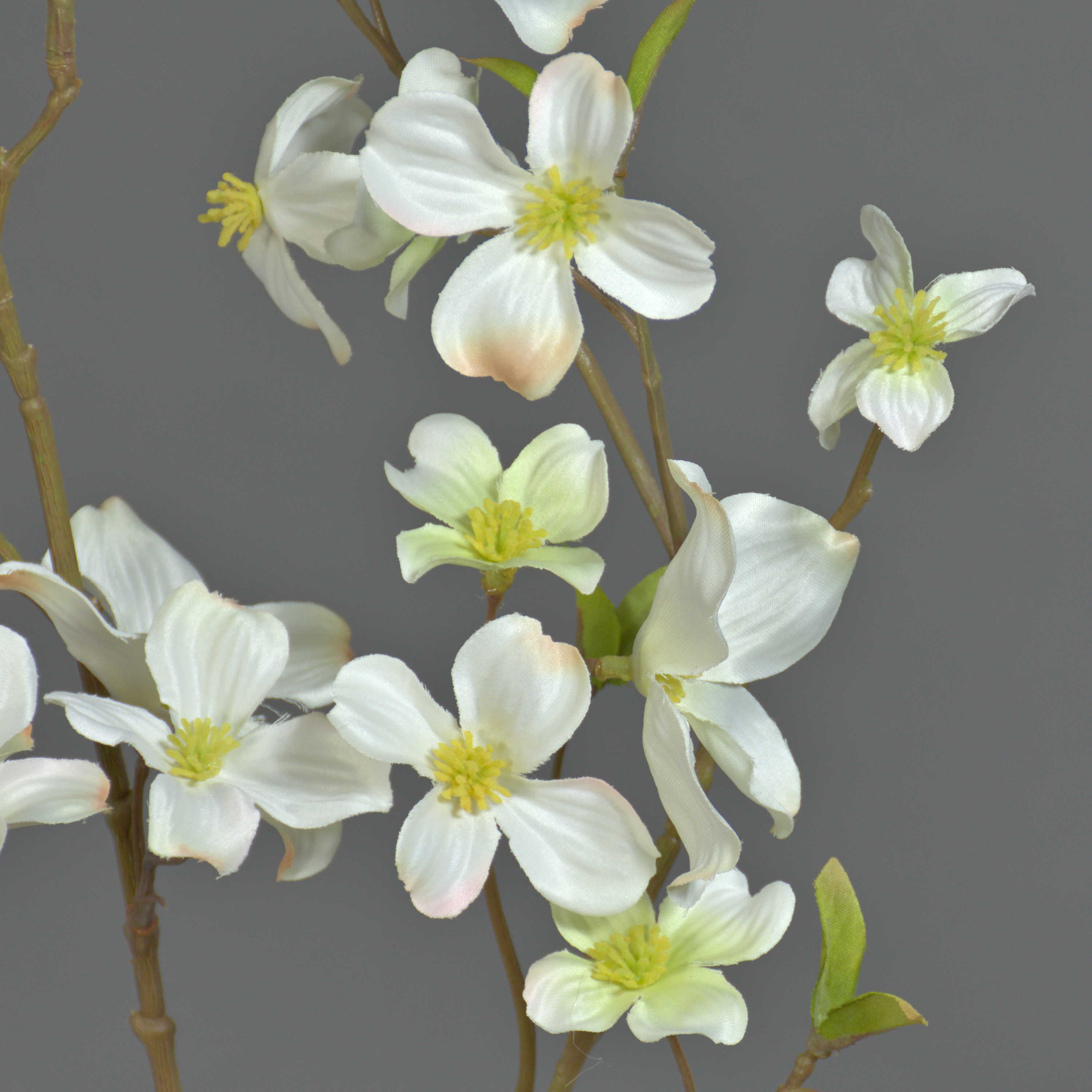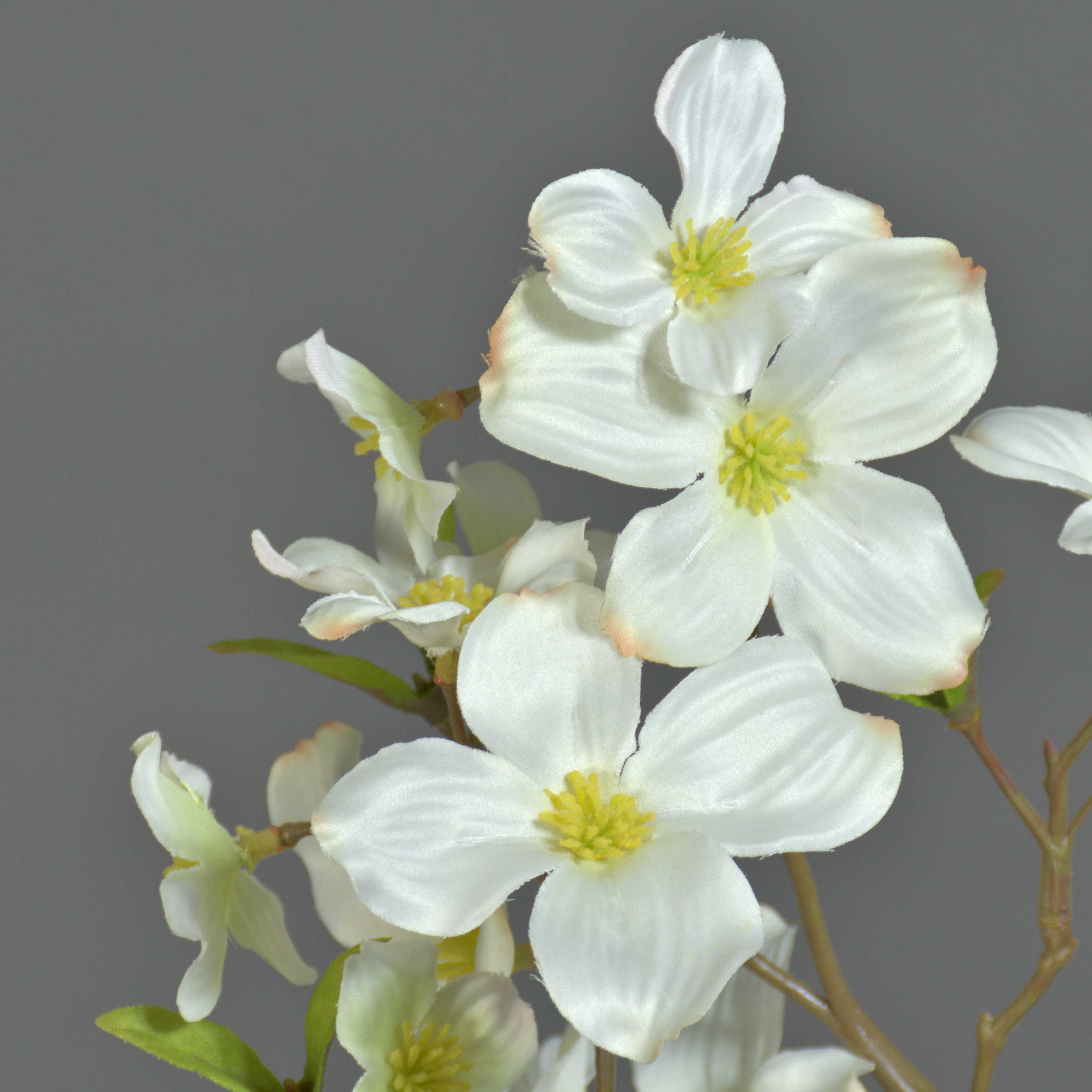 La rama con flores artificiales NARIUS de color crema posee una dimensión total de aprox. 85 cm y se encuentra unida a un tallo.