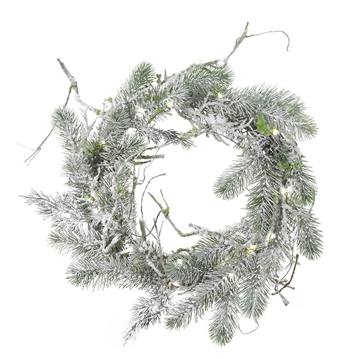 Corona artificial de abeto SILEAS con ramas, nevado, blanco-verde, Ø60cm