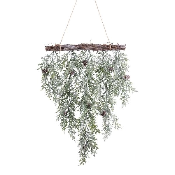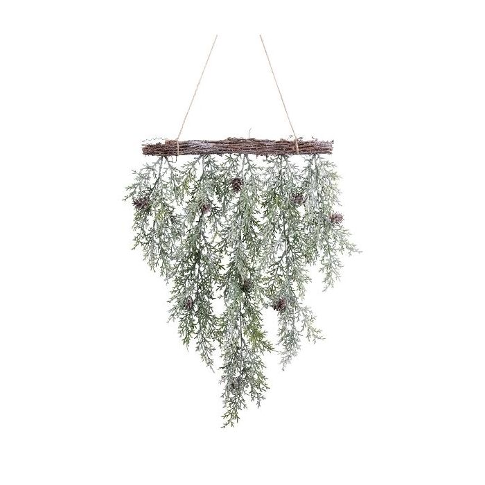 Corona artificial de ciprés DINSA con piñas, congelada, verde-blanca, 55 cm