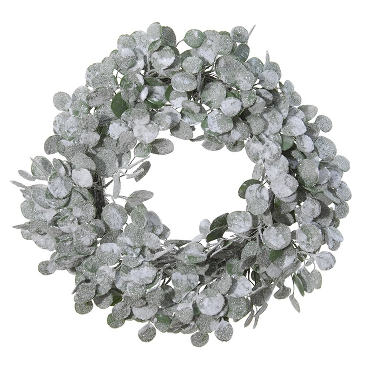 Corona artificial de eucalipto PHONG, helado, blanco-verde, Ø45cm