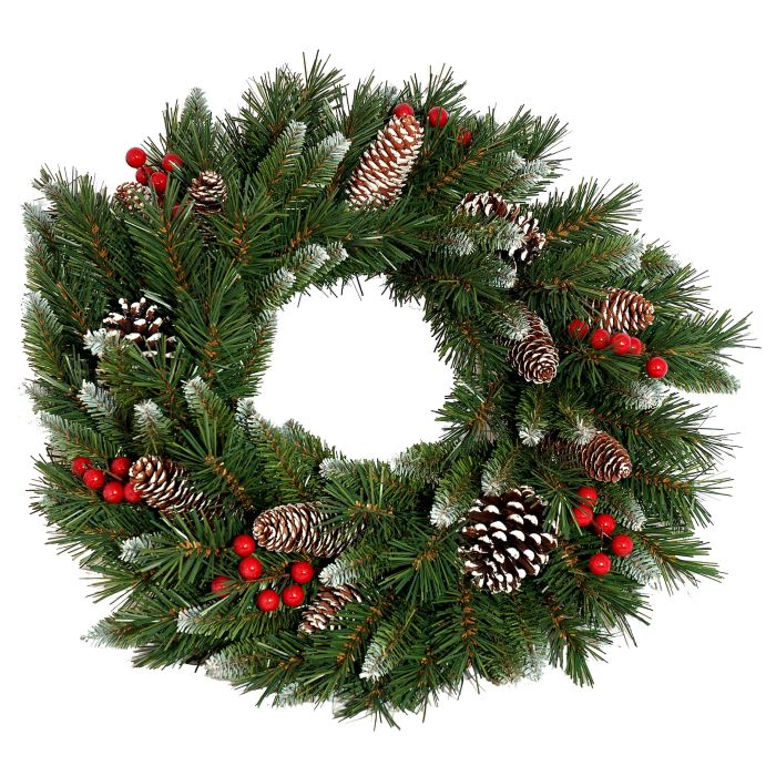- Con piñas, bayas, nieve artificial y 125 ramas de aguja de material PVC de alta calidad