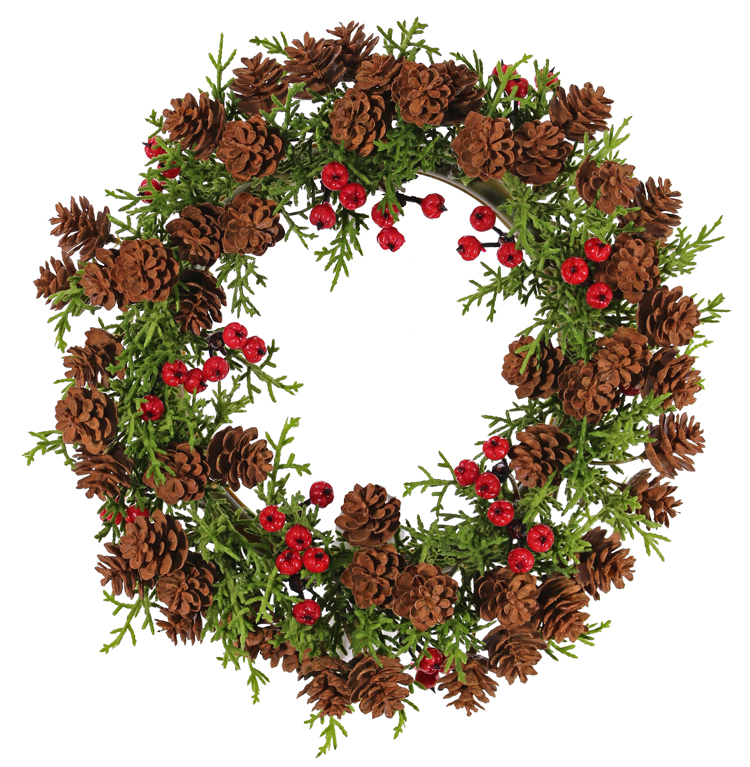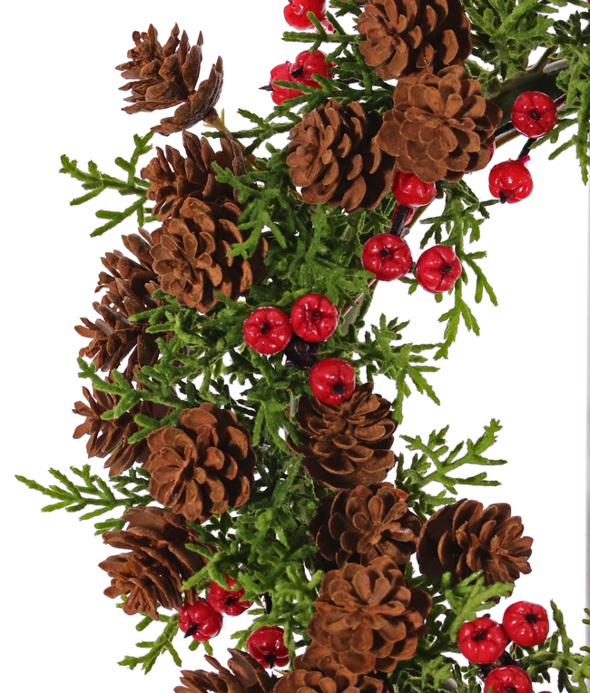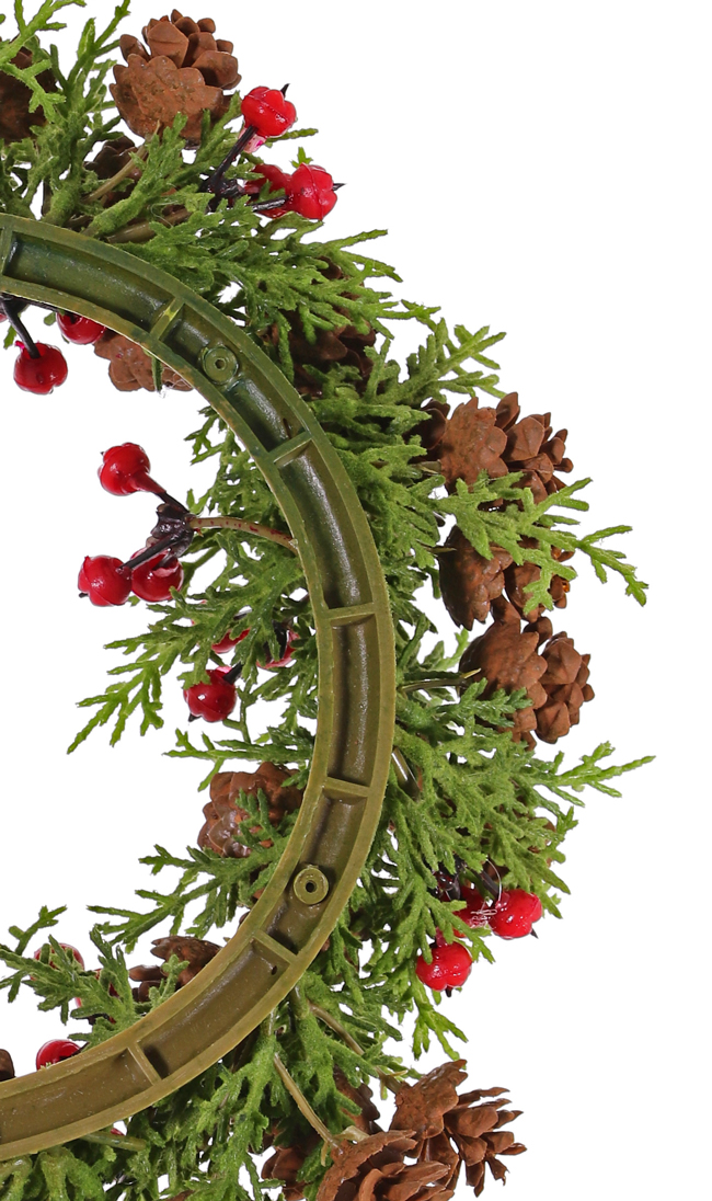 Corona de ciprés artificial TAVIL con conos, bayas, verde-marrón, 25cm
