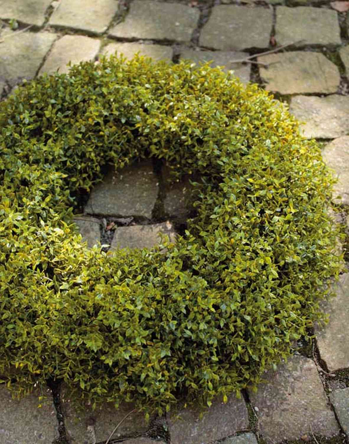 La corona de mirto decorativo JARIK de color verde posee un diámetro total de 25 cm. La alta calidad en su elaboración y el aspecto natural de la corona artificial la convierten en un adorno especial para la primavera y el verano, como una corona de mesa, puerta o pared.