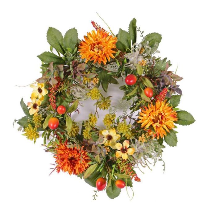 Corona de otoño artificial SABINE, Gerbera, amarillo-naranja, Ø30cm