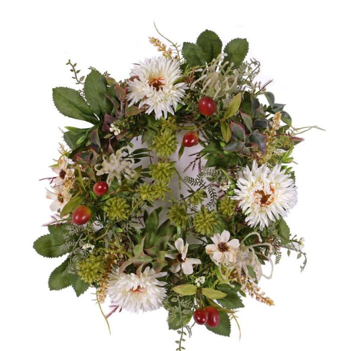 Corona de otoño artificial SABINE, Gerbera, crema, Ø30cm