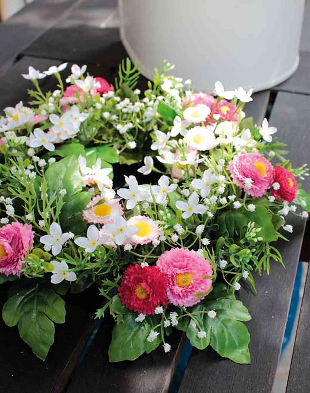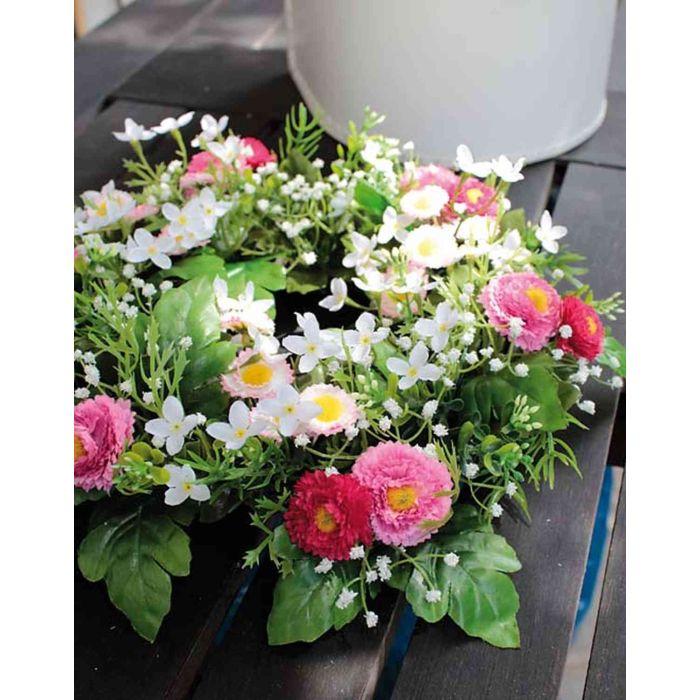 Corona de primavera artificial TARJA, bellis, rosa-blanco, Ø30cm