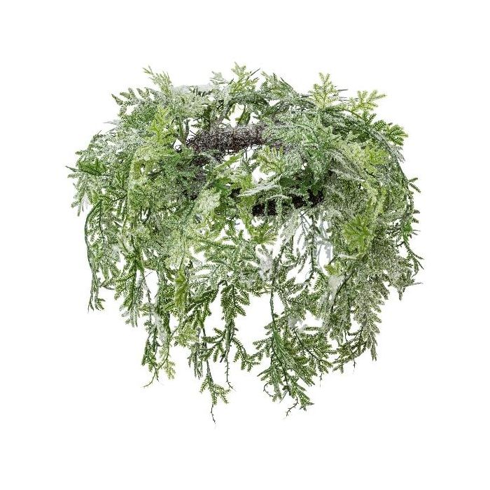Corona de techo artificial de ciprés SOVLI, helada, blanco-verde, Ø 55 cm