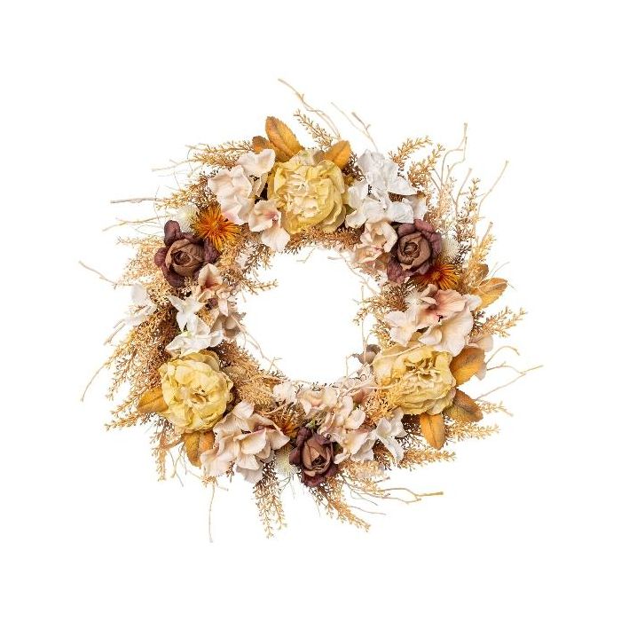 Corona decorativa corona de flores JIRLO, rosa, hortensia, multicolor, Ø 40 cm