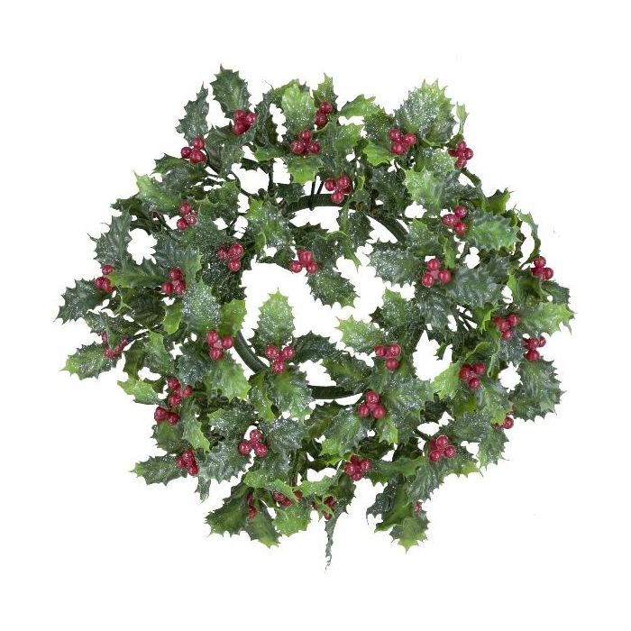 Corona decorativa de acebo LENVI, bayas, congelada, verde-rojo, Ø 25 cm