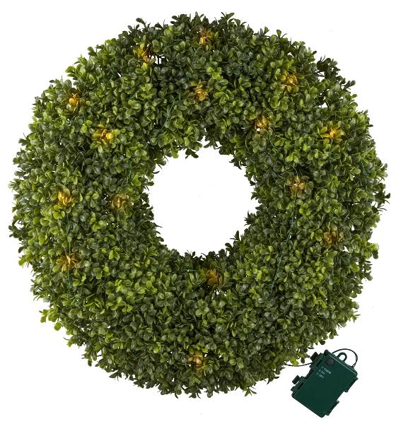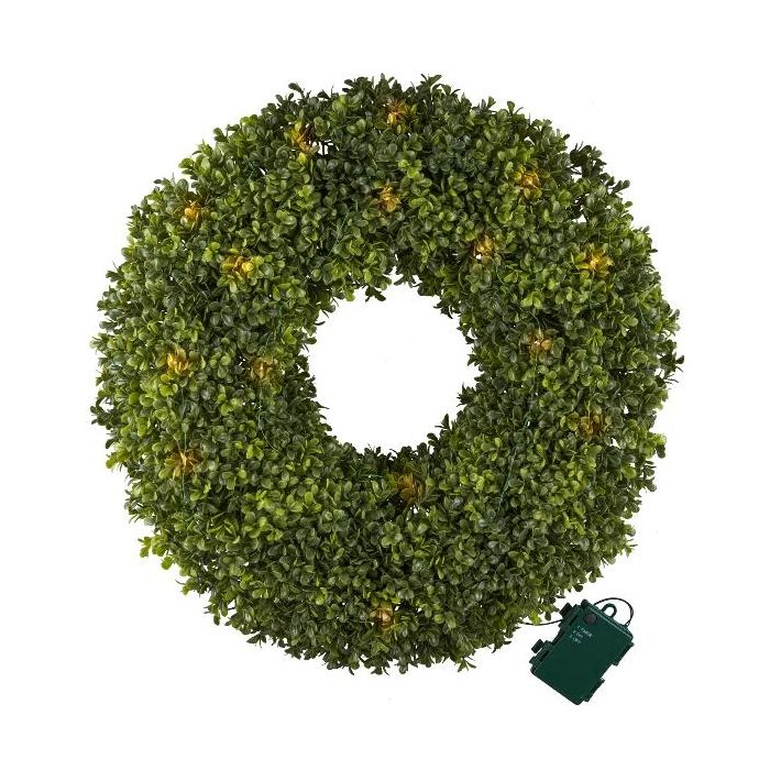 Corona decorativa de boj NIMTO, LED, caja de pilas, crossdoor, Ø 50 cm