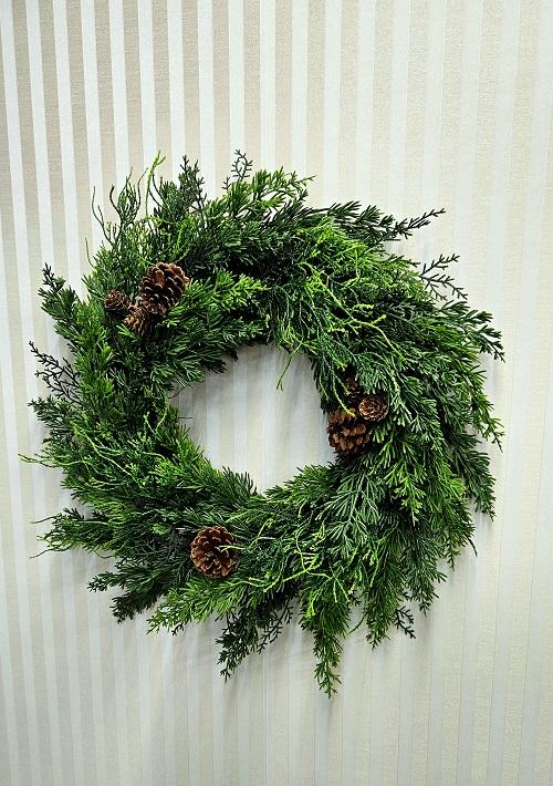 Corona decorativa de ciprés STURMYN con piñas, verde, Ø 50 cm