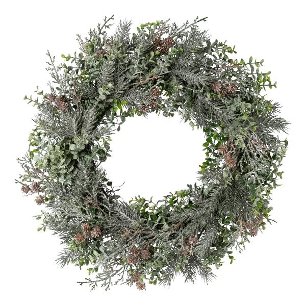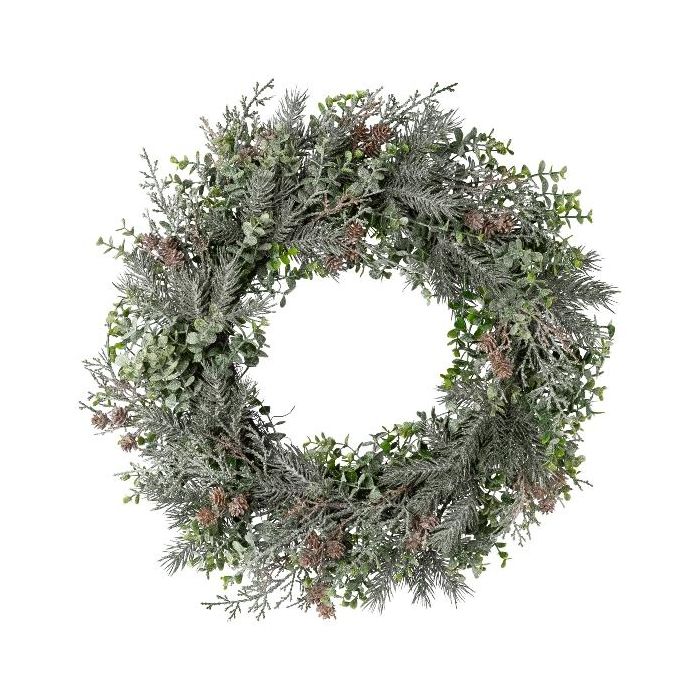 Corona decorativa de eucalipto, abeto y ciprés CAVRO, helada, piñas, blanco-verde, Ø 50 cm