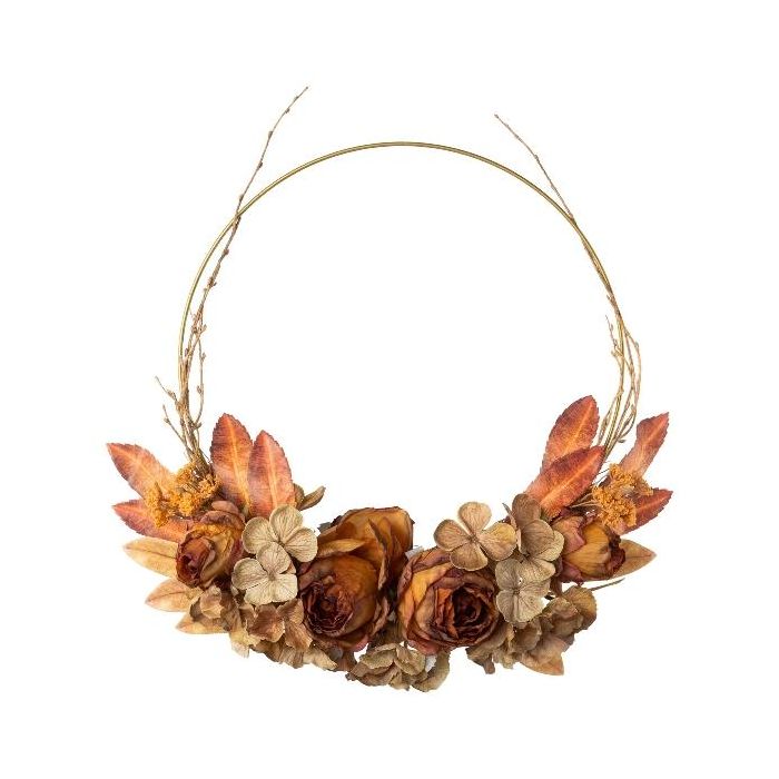 Corona decorativa de flores otoñales WIMRA, hortensia, rosa, marrón-naranja, Ø 50 cm